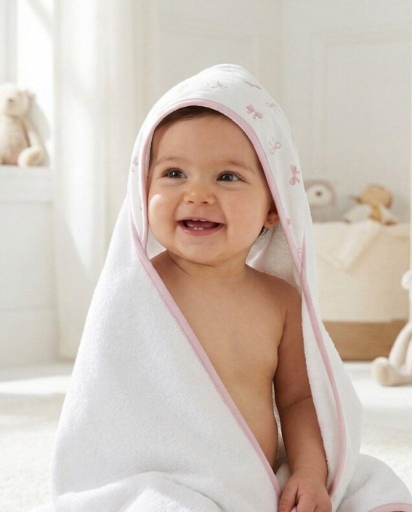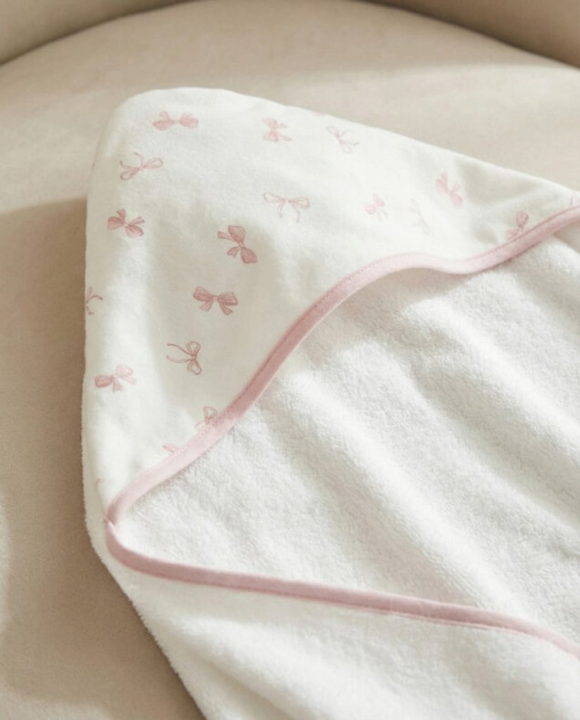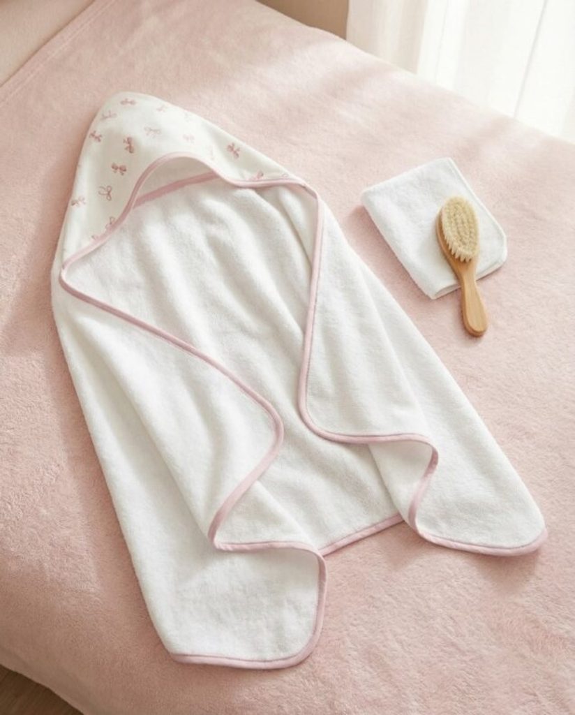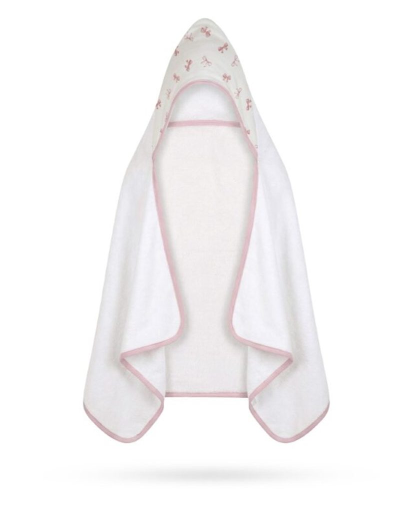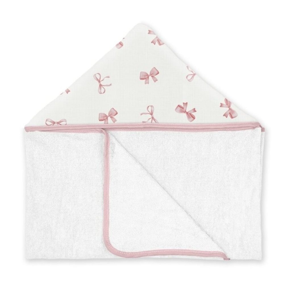Velká bambusová osuška s kapucí značky Albero Mio z kolekce Cotton Print - vzor POWDER BOWS (CP9).