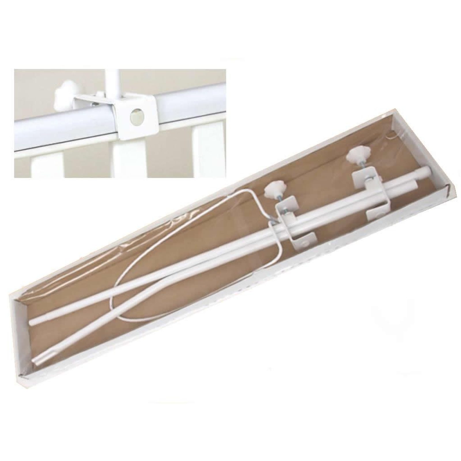 Držák nebes na postýlku od výrobce Albero Mio: pro připevnění nebes, moskytiér, baldachýnů, připevňuje se na čelo nebo bok postýlky, kovová konstrukce s jednoduchou montáží, vhodný pro většinu dětských postýlek dostupných na trhu o rozměrech 120x60cm, 140x70cm, mini postýlky 90x40cm.