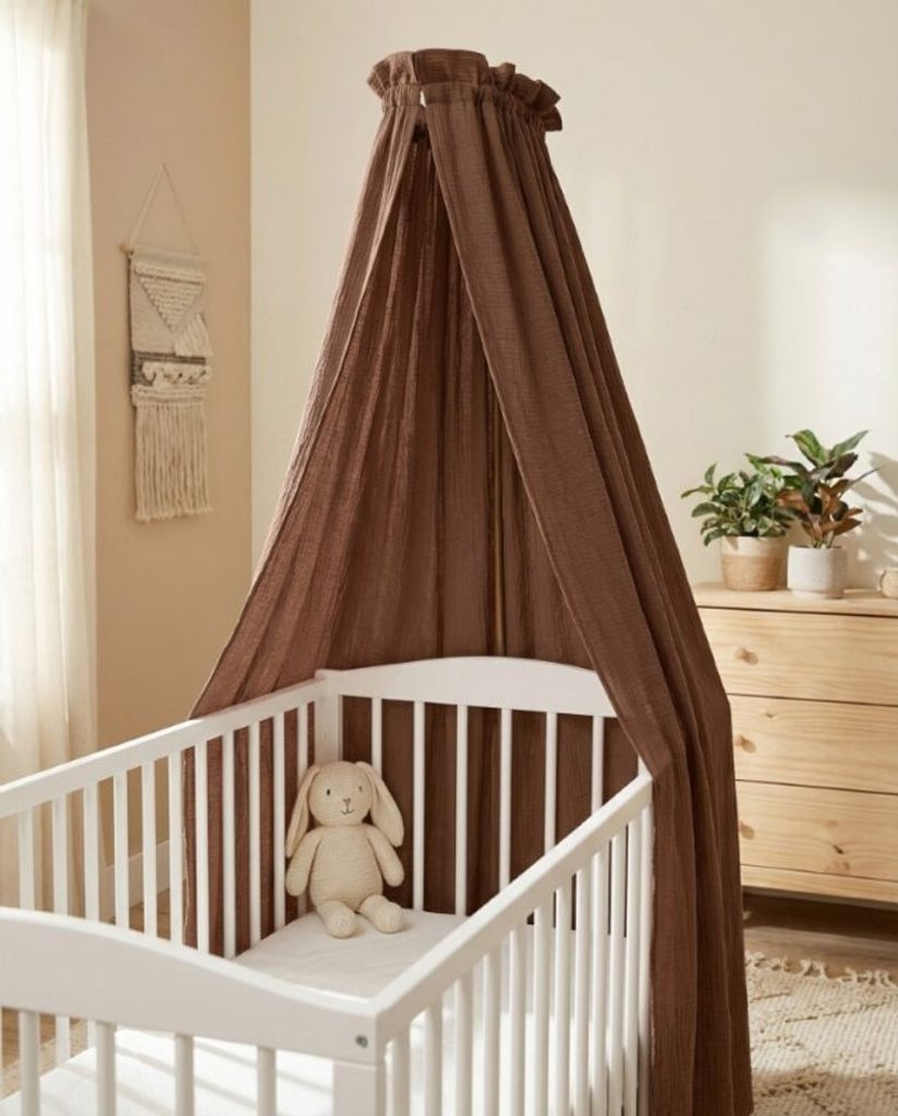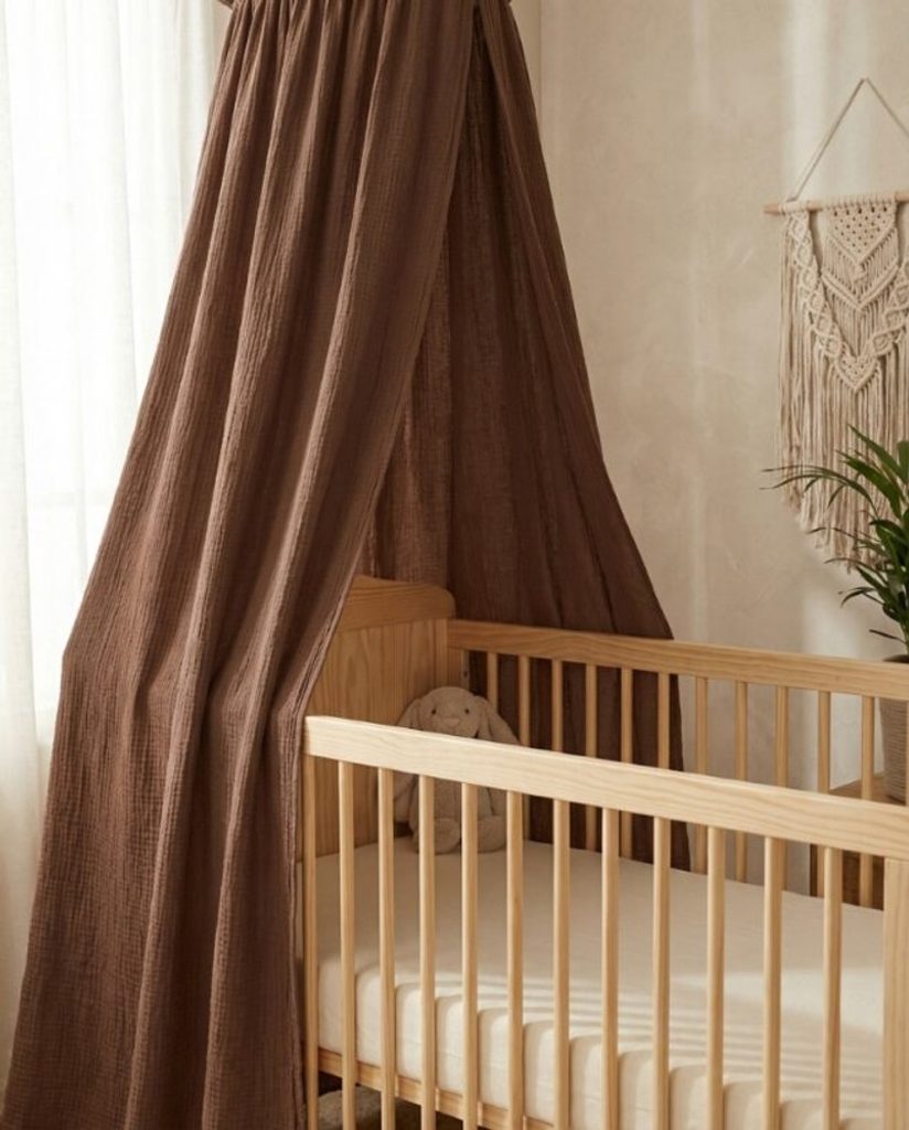Univerzální mušelínová nebesa nad postýlku značky Albero Mio kolekce Cotton - barva ČOKOLÁDOVĚ HNĚDÁ (CC8).