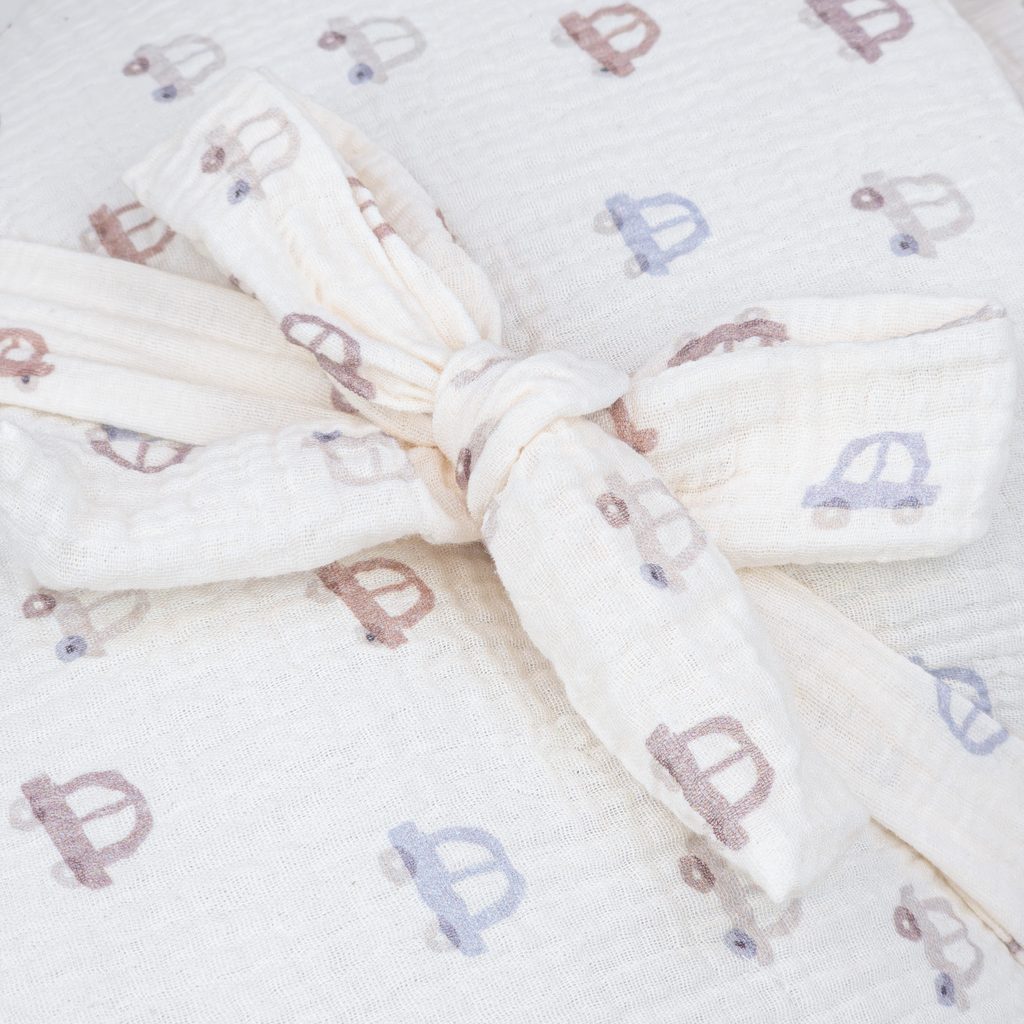 Mušelínová zavinovačka se vzorem Mini Cars (CMP2) značky Albero Mio: limitovaná kolekce, jemný mušelín v krémové barvě se vzorem autíček, se zavazováním na mašli, rozměr 75x75cm, mušelín - tkanina známá již tisíciletí byla před pár lety "znovu" objevena, a stala se obrovským hitem nejen v oděvním…
