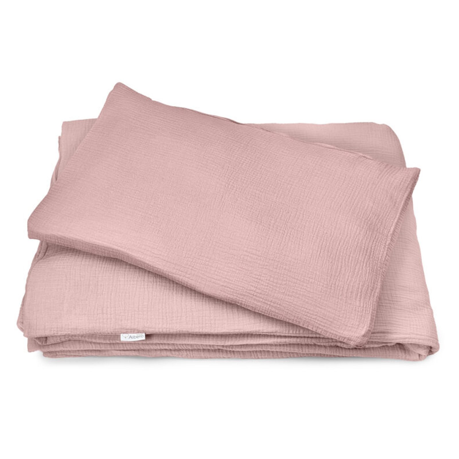 2-dílné mušelínové povlečení do postýlky značky Albero Mio z kolekce Cotton Color - barva: PUDROVĚ RŮŽOVÁ (CC1).