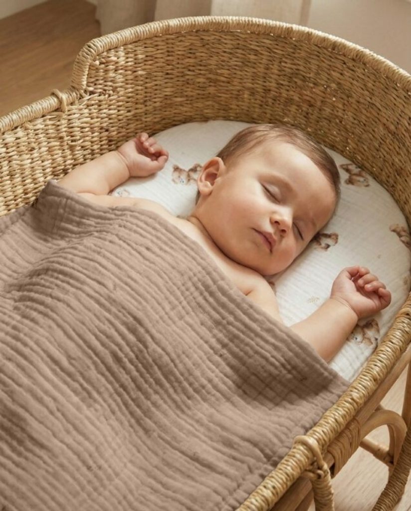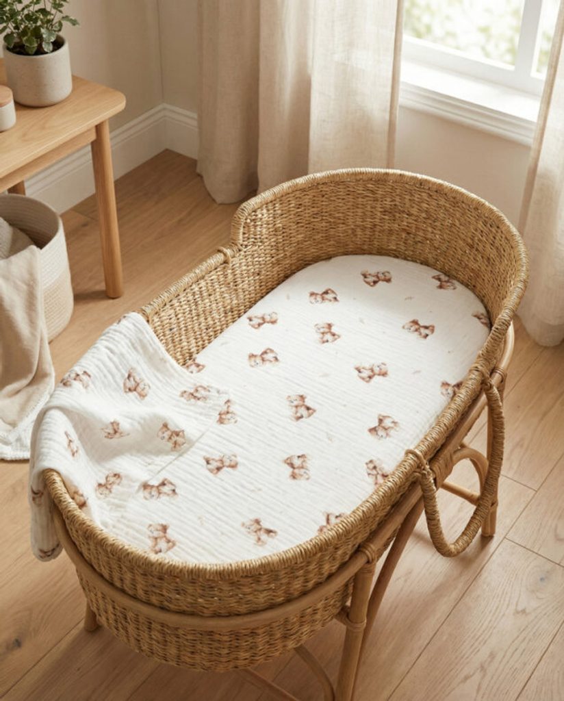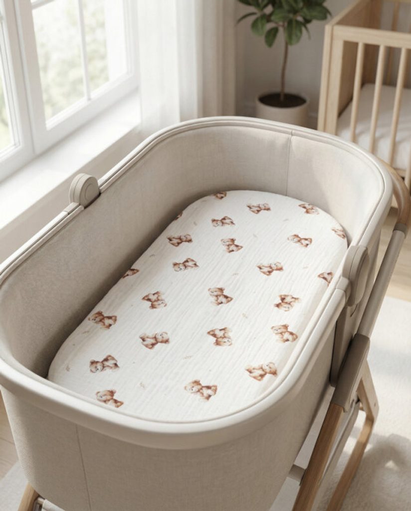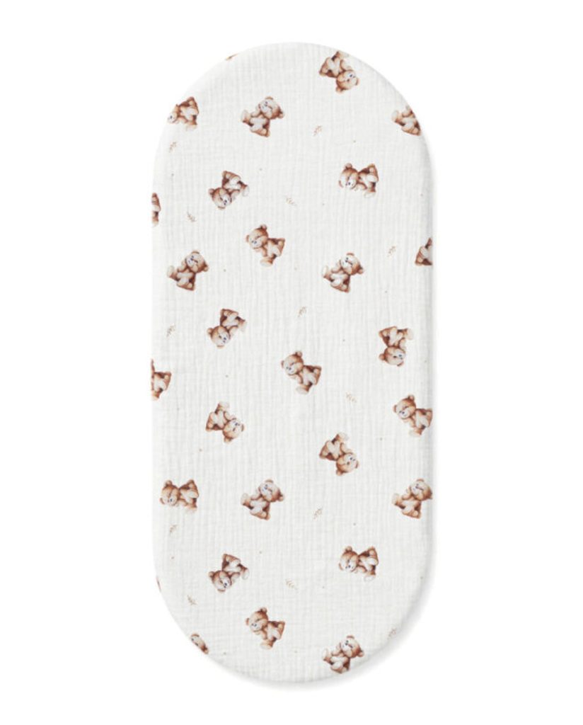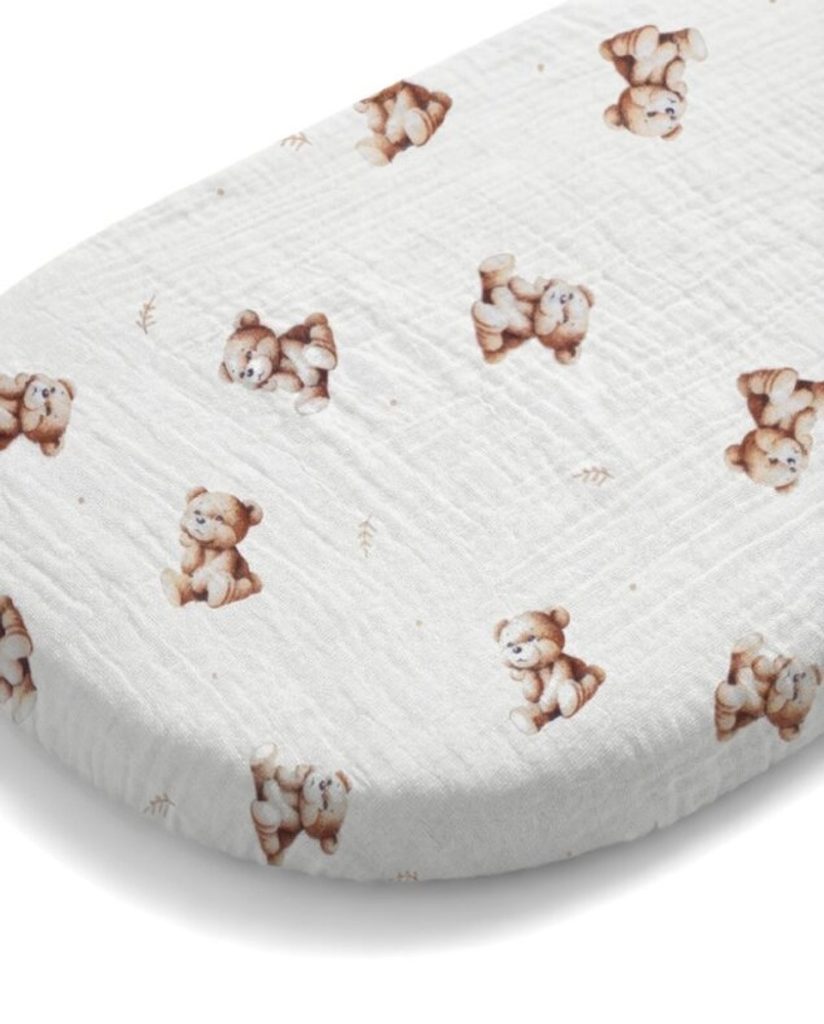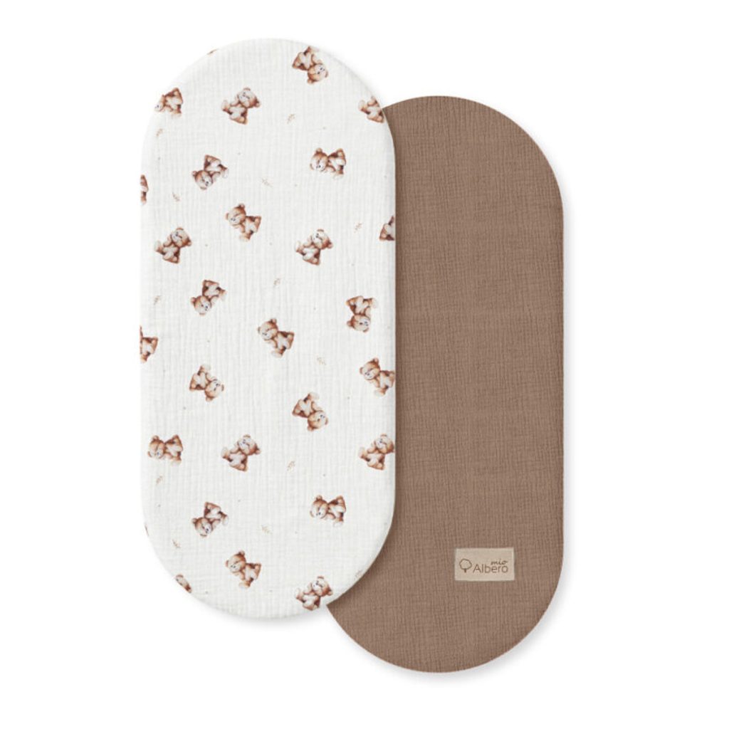 Sada 2ks mušelínových prostěradel do kočárku (kolébky nebo koše) značky Albero Mio z kolekce Cotton - vzor: VINTAGE TEDDY (CM1):