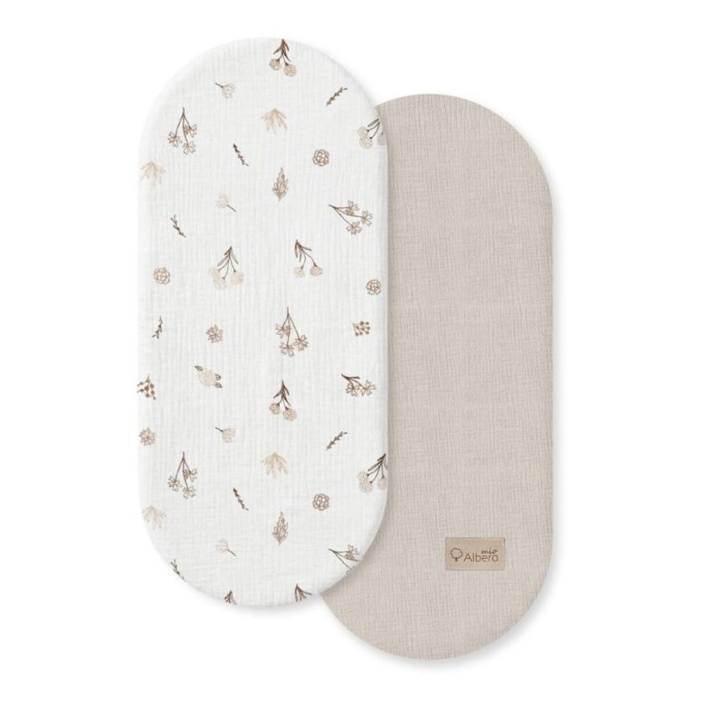 Sada 2ks mušelínových prostěradel do kočárku (kolébky nebo koše) značky Albero Mio z kolekce Cotton - vzor: Wild Flowers (CM2):