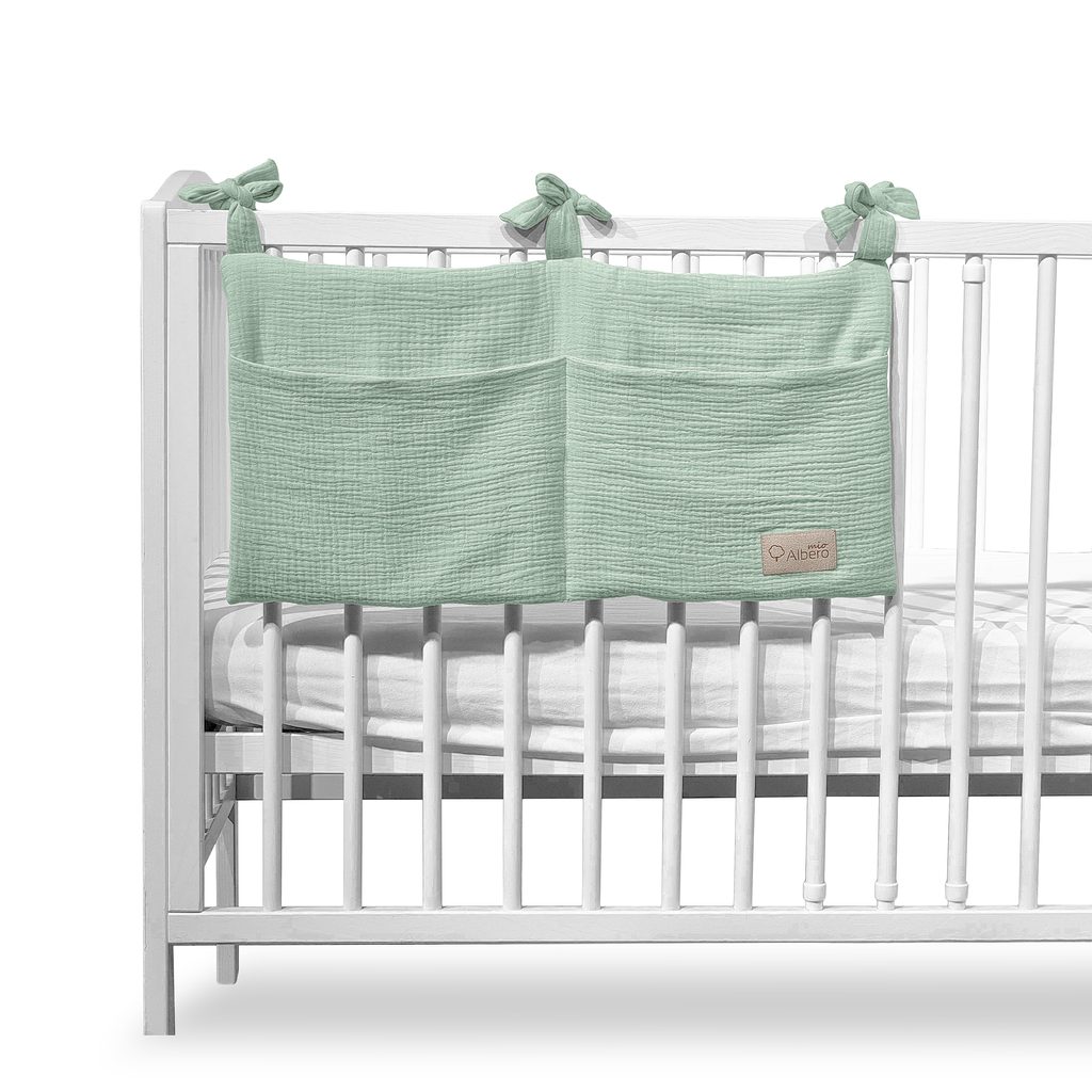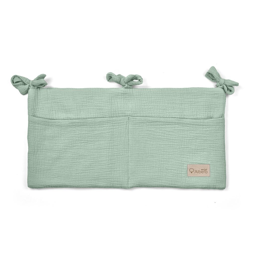 Mušelínový kapsář na postýlku značky Albero Mio z řady Cotton Color - barva ŠALVĚJOVĚ ZELENÁ (CC4):