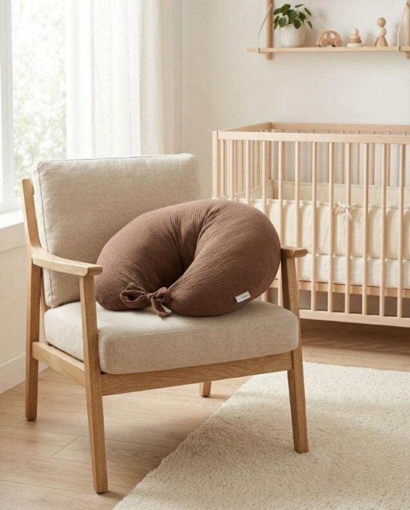 Mušelínový kojící polštář značky Albero Mio. Barevné provedení: (CC8) ČOKOLÁDOVĚ HNĚDÁ.