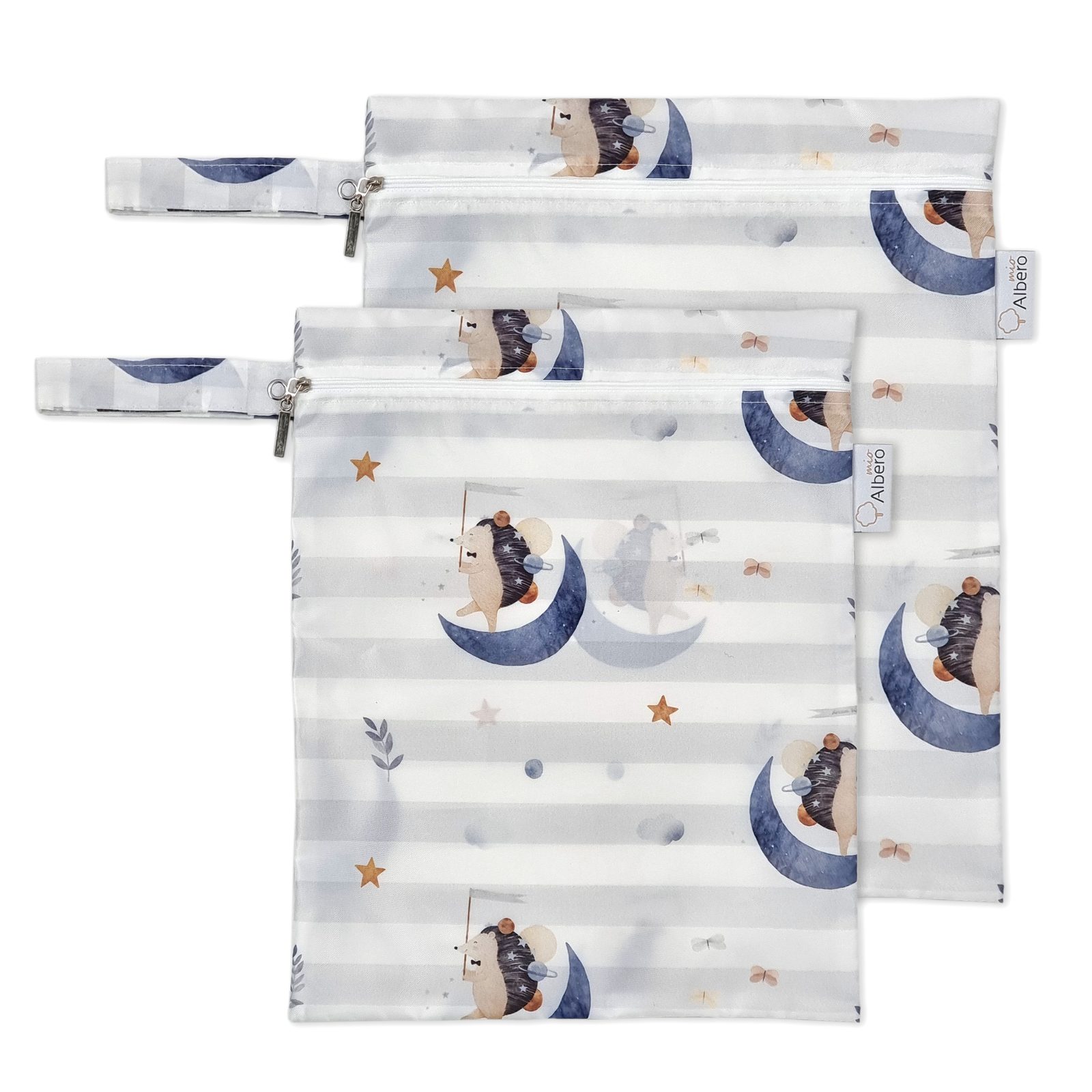 Sada 2ks nepromokavých taštiček značky Albero Mio z kolekce Cotton - vzor MOON HEDGEHOG (CP3):