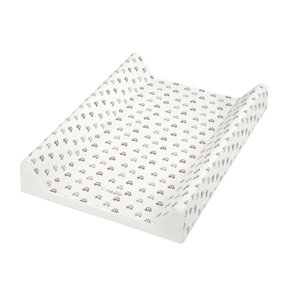 Profilovaná, měkká přebalovací podložka o rozměru 70x47cm značky Albero Mio - design (CMP2) MINI CARS: určená k umístění na přebalovací komody, pulty, stoly (tj. na pevné a stabilní podklady), 2-hranná profilovaná (2 zvýšené boční hrany), měkká výplň z polyuretanové pěny, povrch z bezpečné PVC…