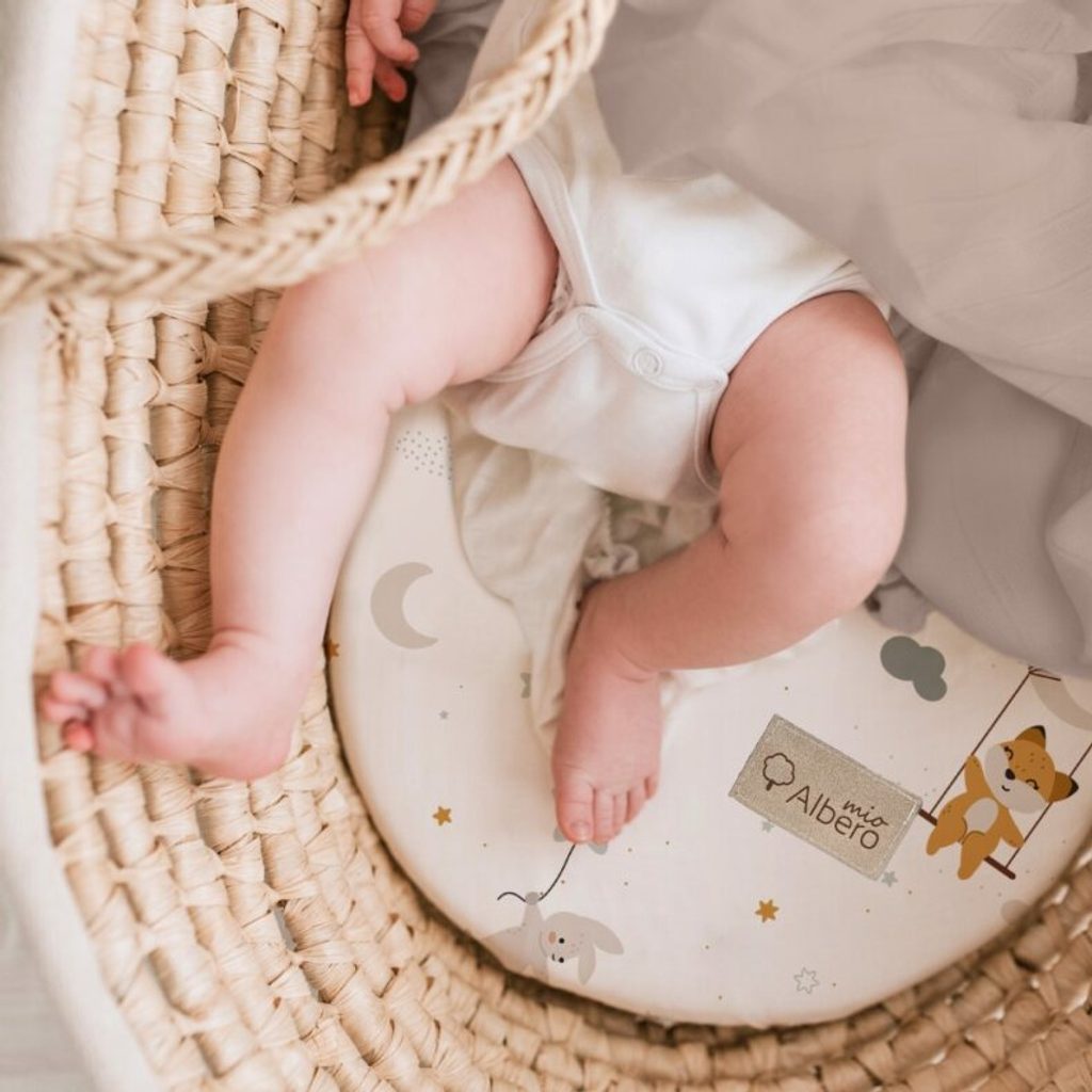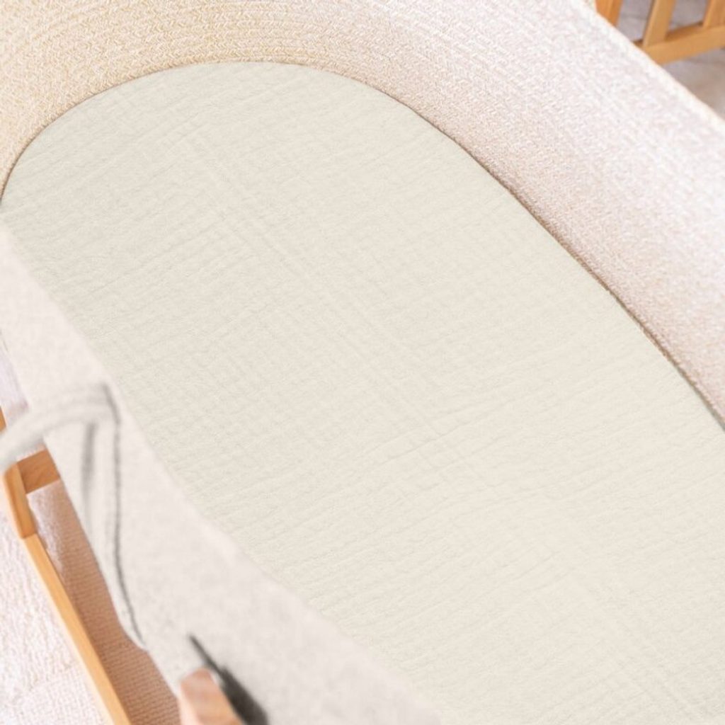 Sada 2ks prostěradel do kočárku / mojžíšova koše značky Albero Mio - vzor MOUSE (W421): pro oválné matrace do rozměru 80x35cm, s všitou gumičkou po obvodu, jednobarevné z bavlněného mušelínu (barva vanilková), vzorované z bavlněného saténu, certifikováno Oeko-Tex Standard 100. Slaďte s dalšími…
