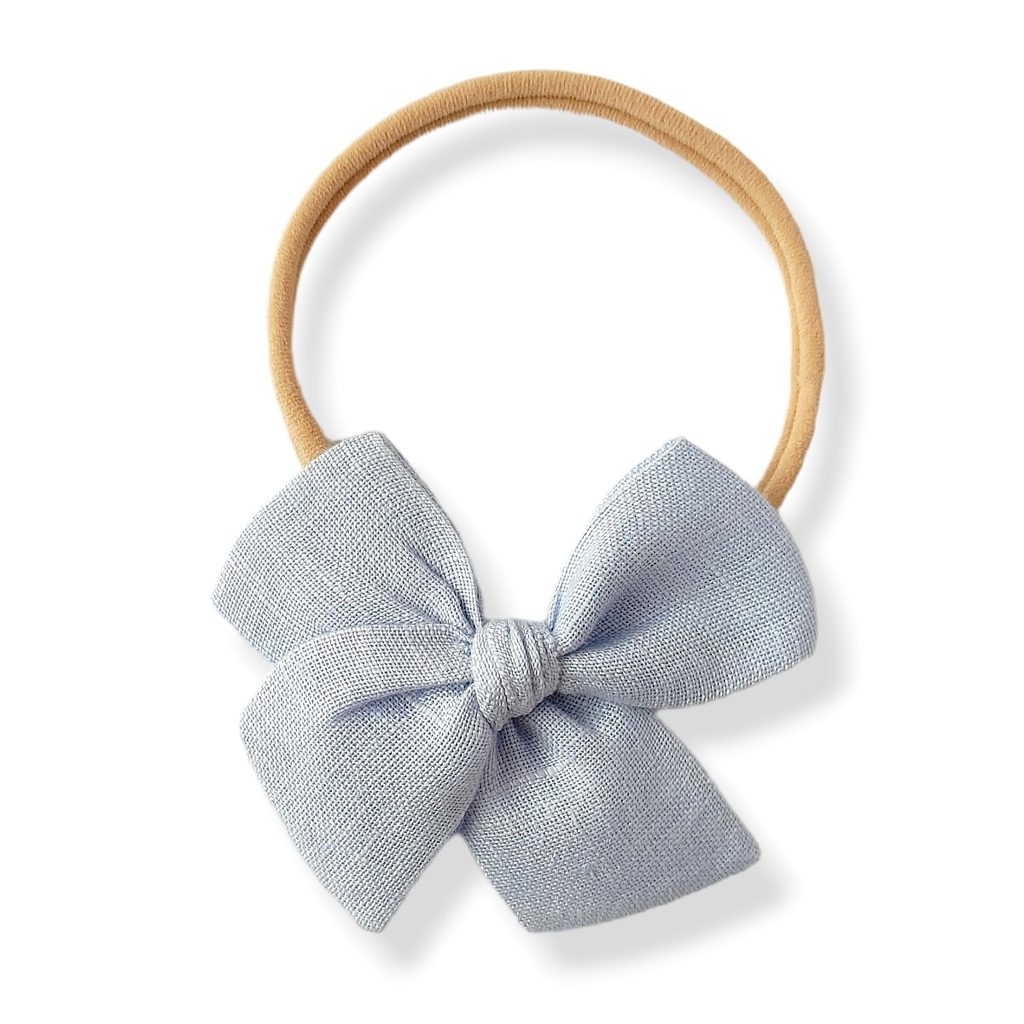 Stylová čelenka s mašlí z dílny Aliro model Aline. Barva/provedení: světle modrá lněná.