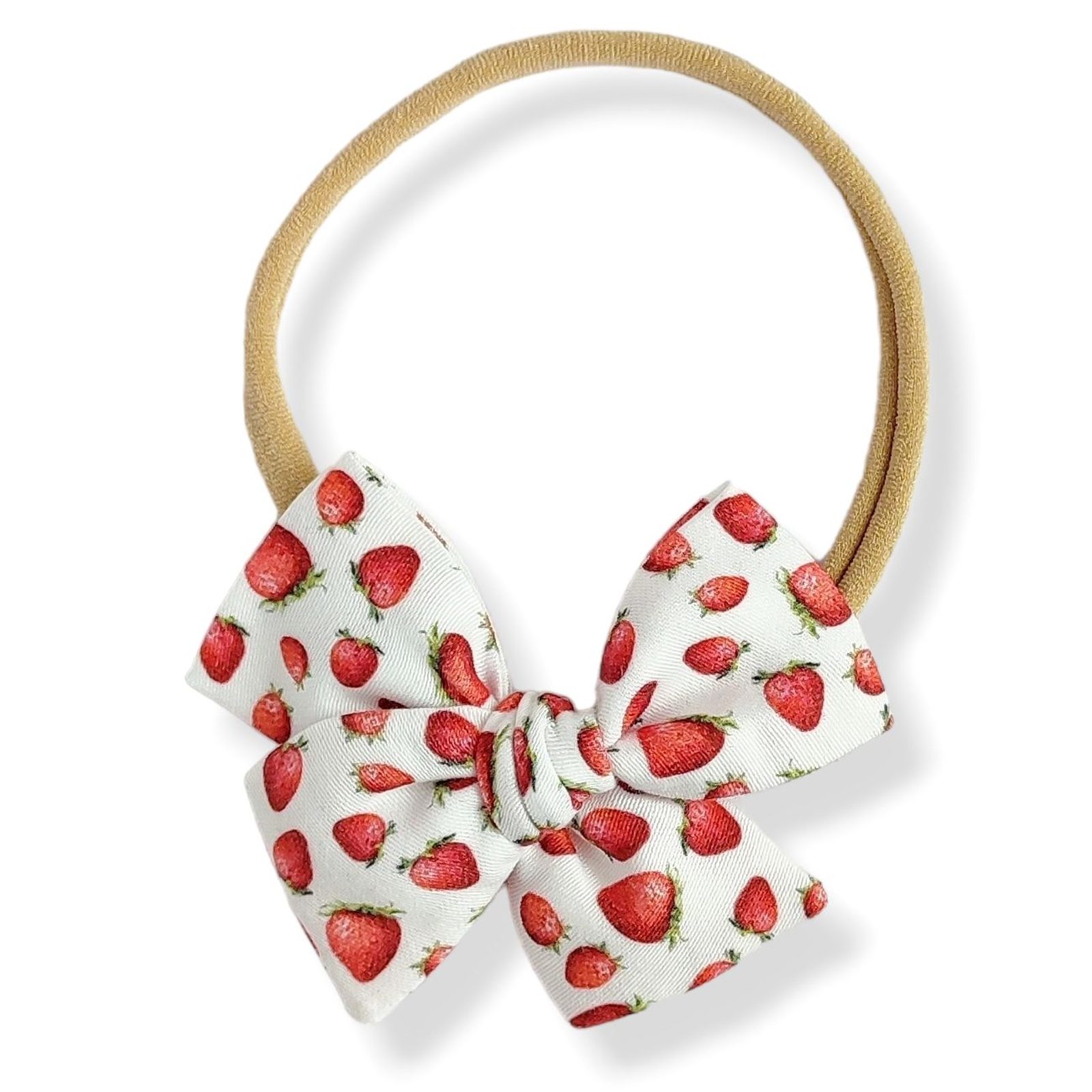 Stylová čelenka s mašlí z dílny Aliro model Aline. Barva/provedení: jahody bavlna.