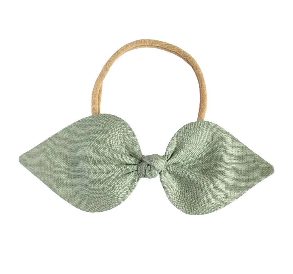 Stylová čelenka s mašlí z dílny Aliro model Zoe. Barva/provedení: pistáciová zelená lněná.