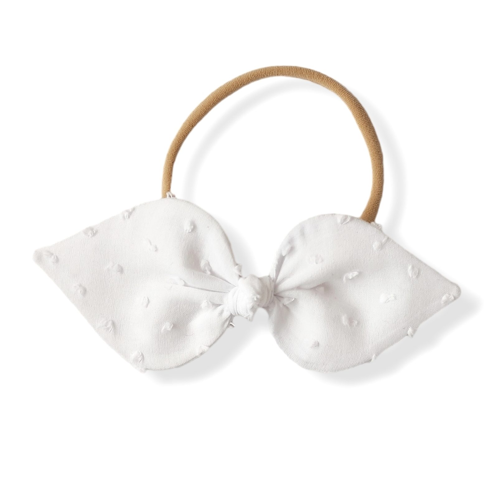 Stylová čelenka s mašlí z dílny Aliro model Zoe. Barva/provedení: bílá plumeti bavlna.