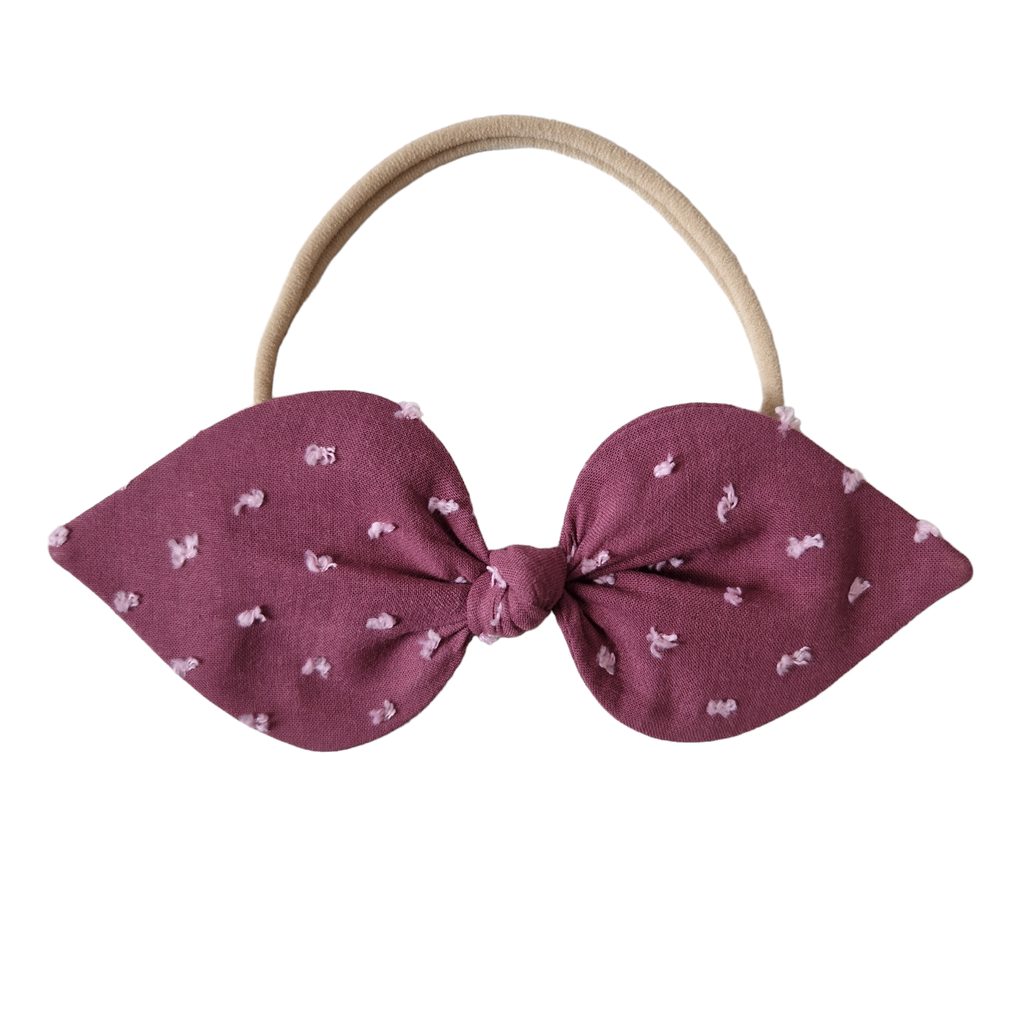 Stylová čelenka s mašlí z dílny Aliro model Zoe. Barva/provedení: BURGUNDSKÁ VÍNOVÁ plumeti bavlna.