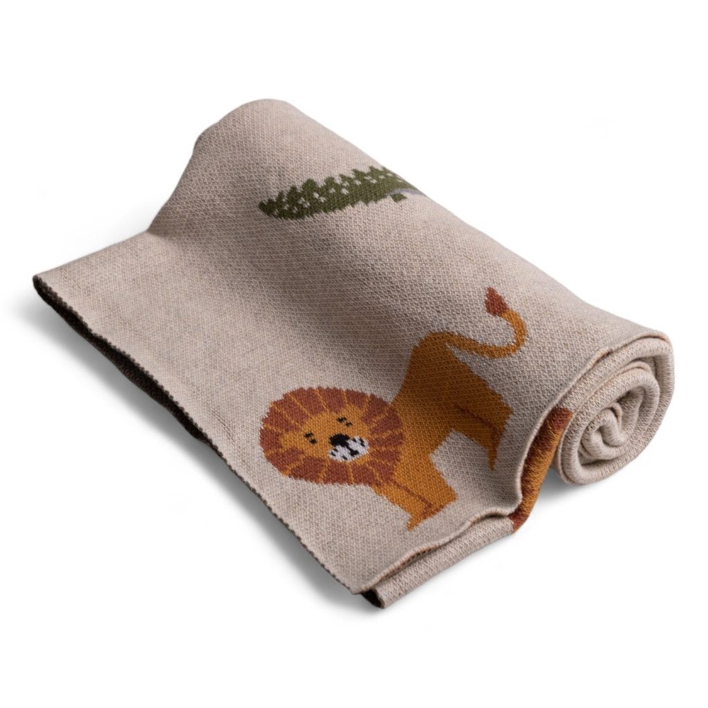 Bavlněná pletená dětská deka "RAINBOW" (80x100cm) značky BabyMatex vzor č.02 - AFRIKA: široké využití - vhodná do kočárku, postýlky, autosedačky, certifikát Oeko-Tex Standart 100. Materiál: 100% bavlna. Rozměr: 80x100cm.