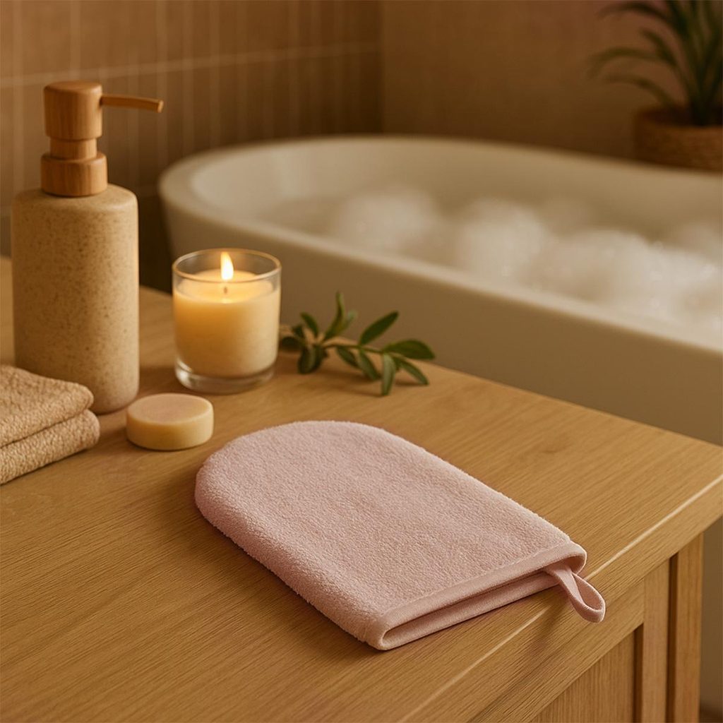 Bambusová žínka Natural Bamboo značky BabyOno - barva BÉŽOVÁ: velmi jemný, měkoučký a savý materiál, navlékací na ruku jako "rukavice", poutko na zavěšení, z bambusového froté (70% bambusová viskóza/30% bavlna). Rozměr: 21x12cm.