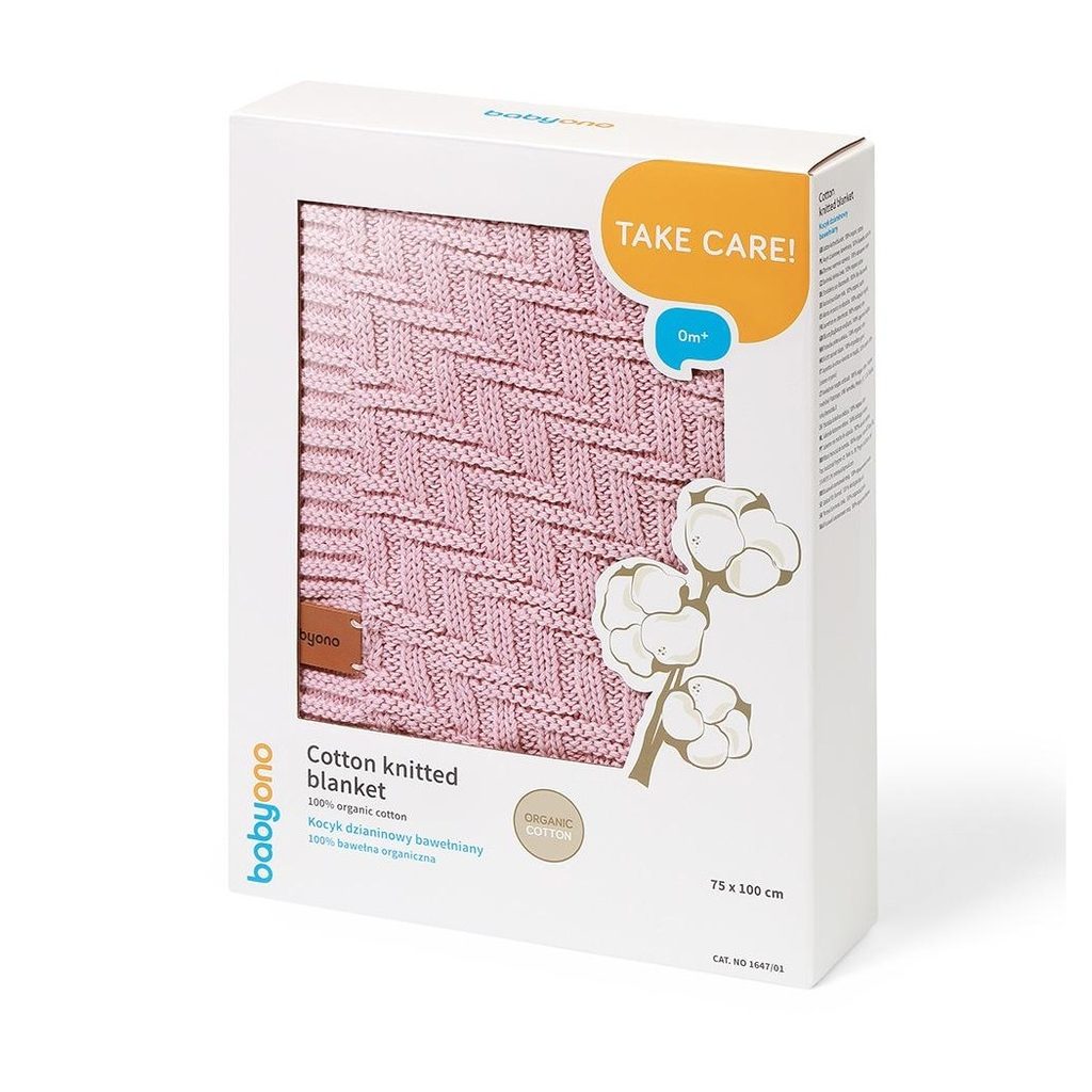 Stylová bavlněná pletená dětská deka (75x100cm) značky BabyOno - barva RŮŽOVÁ: univerzální měkká, lehká, pohodlná, prodyšná, vhodná na jaro/léto/podzim, na ven do kočárku i na doma, z organické bavlny s certifikátem GOTS. Materiál: 100% organická bavlna. Rozměry: 75x100cm.