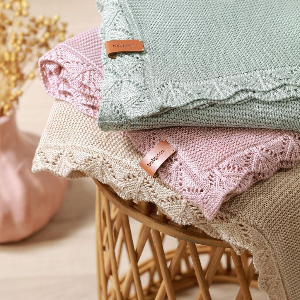 Stylová bambusová pletená dětská deka s ozdobným lemem (75x100cm) značky BabyOno - barva ŠALVĚJOVĚ ZELENÁ: lehounká, pohodlná a prodyšná, extra jemná a hebká bambusová příze, hypoalergenní a antibakteriální vlastnosti,  vhodná na jaro/léto/podzim, na ven do kočárku i na doma, s vyplétaným ozdobným…