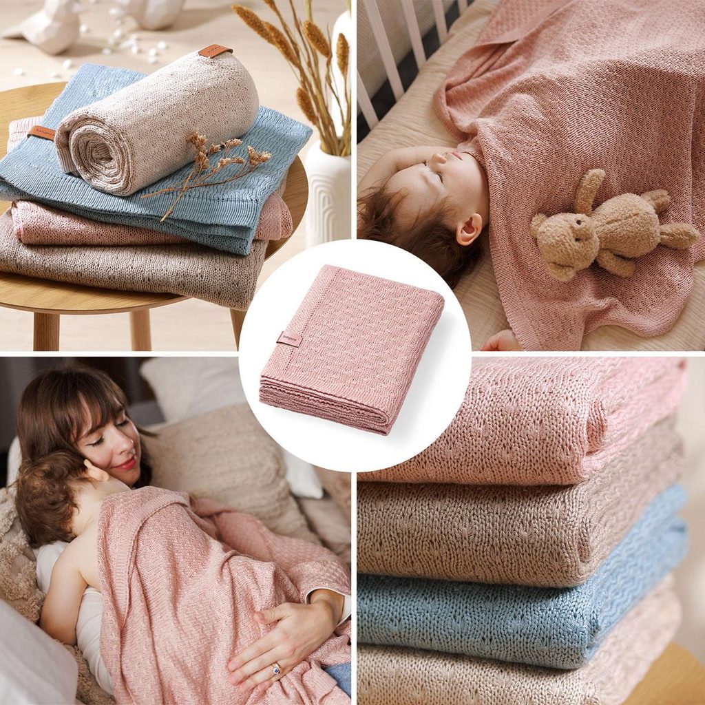 Stylová bambusová pletená dětská deka (75x100cm) značky BabyOno - barva PUDROVĚ RŮŽOVÁ: lehounká, pohodlná a prodyšná, extra jemná a hebká bambusová příze, hypoalergenní a antibakteriální vlastnosti,  vhodná na jaro/léto/podzim, na ven do kočárku i na doma, drobný vyplétaný vzor.  Materiál: 100%…