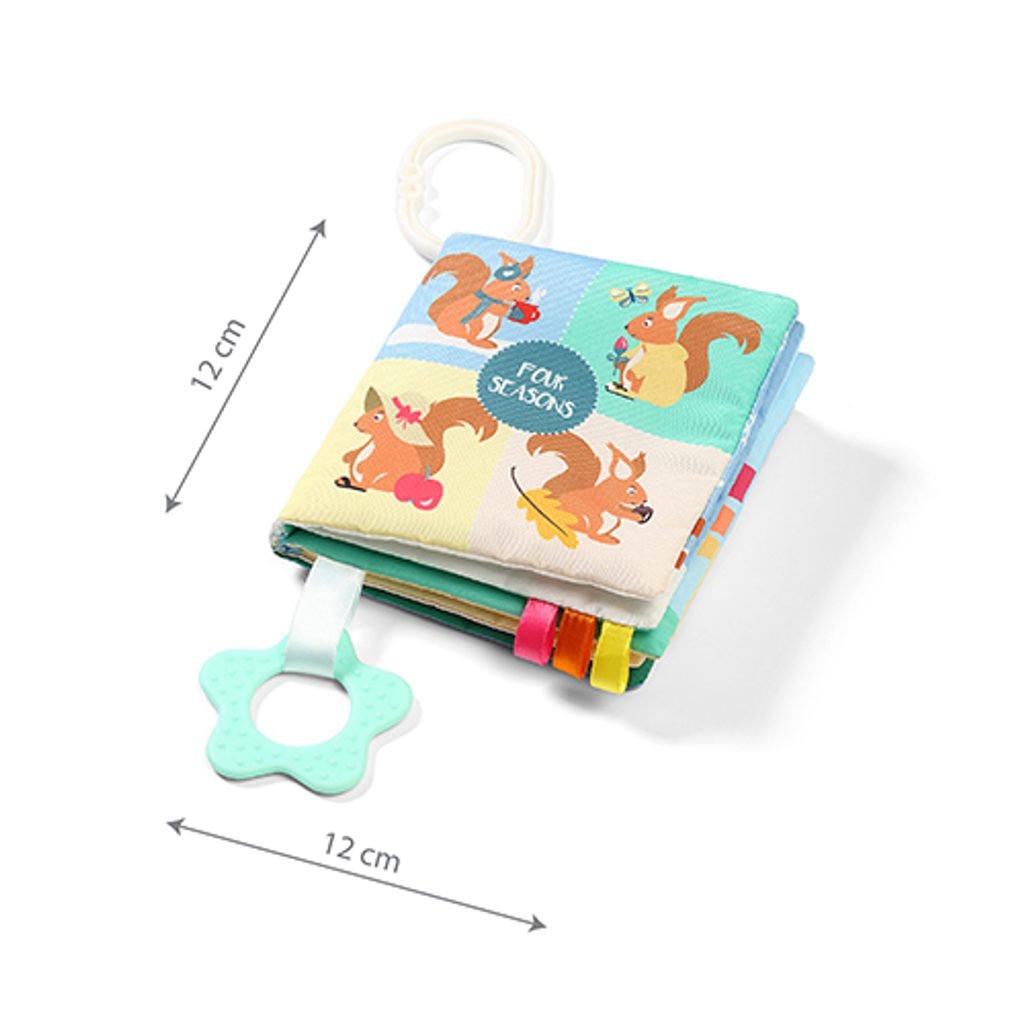 Senzorická látková knížka SEASONS značky BabyOno: obrázky s tématikou roční období, součástí: pískátko, kousátko, šustítko, senzorická poutka a uzlík, "C" spona pro zavěšení, procvičuje úchop, rozvíjí zrakovo-sluchovou koordinaci, je velmi lehká - dobře se drží i v malých ručkách, certifikace Oeko…
