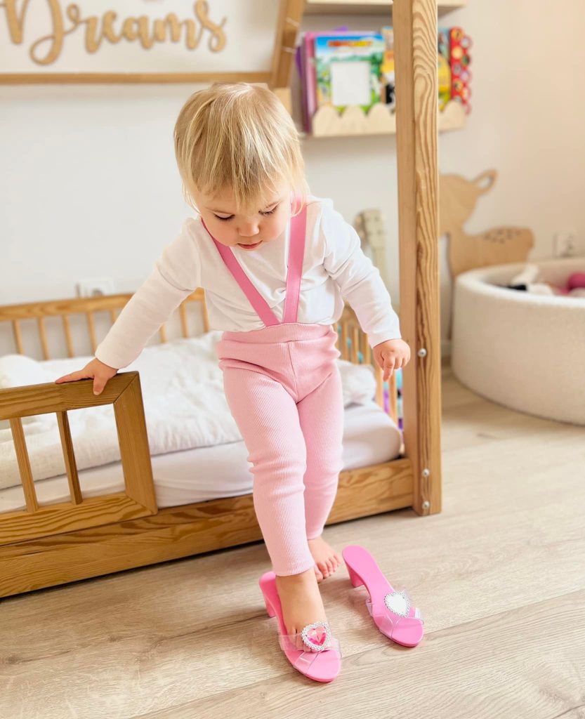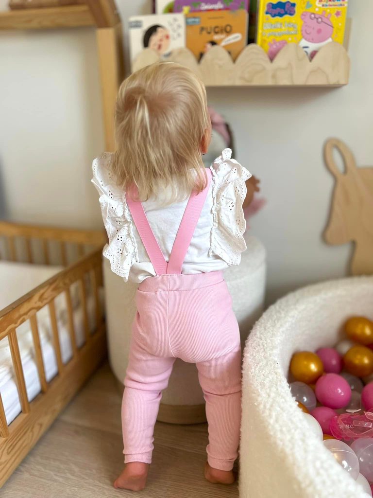 Stylové žebrované Legíny s kšandami od Bunnykids - barva RŮŽOVÁ: