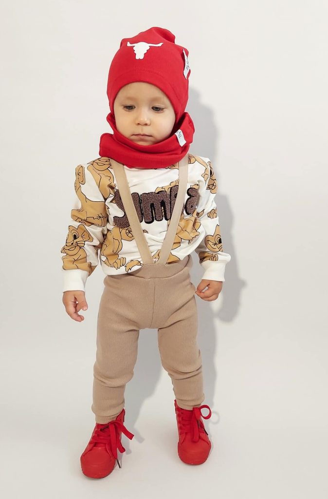 Stylové žebrované Legíny s kšandami od Bunnykids - barva TMAVĚ BÉŽOVÁ: