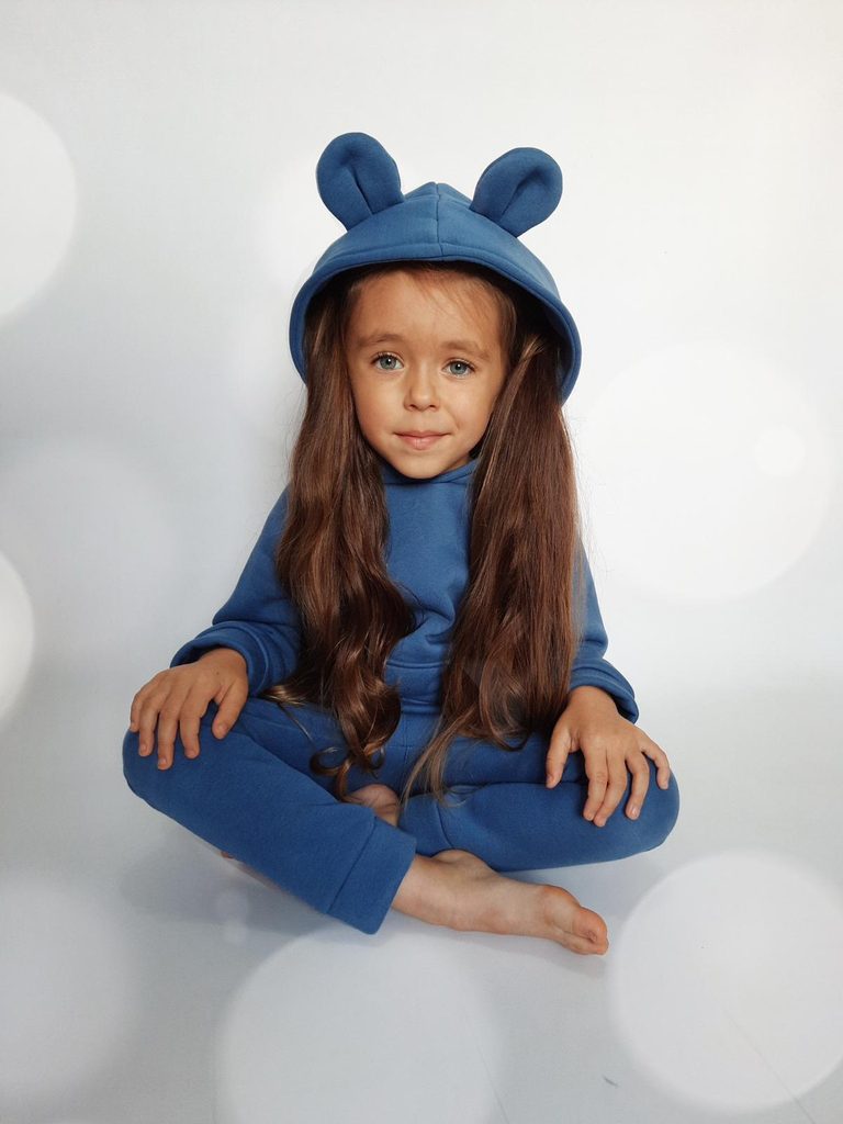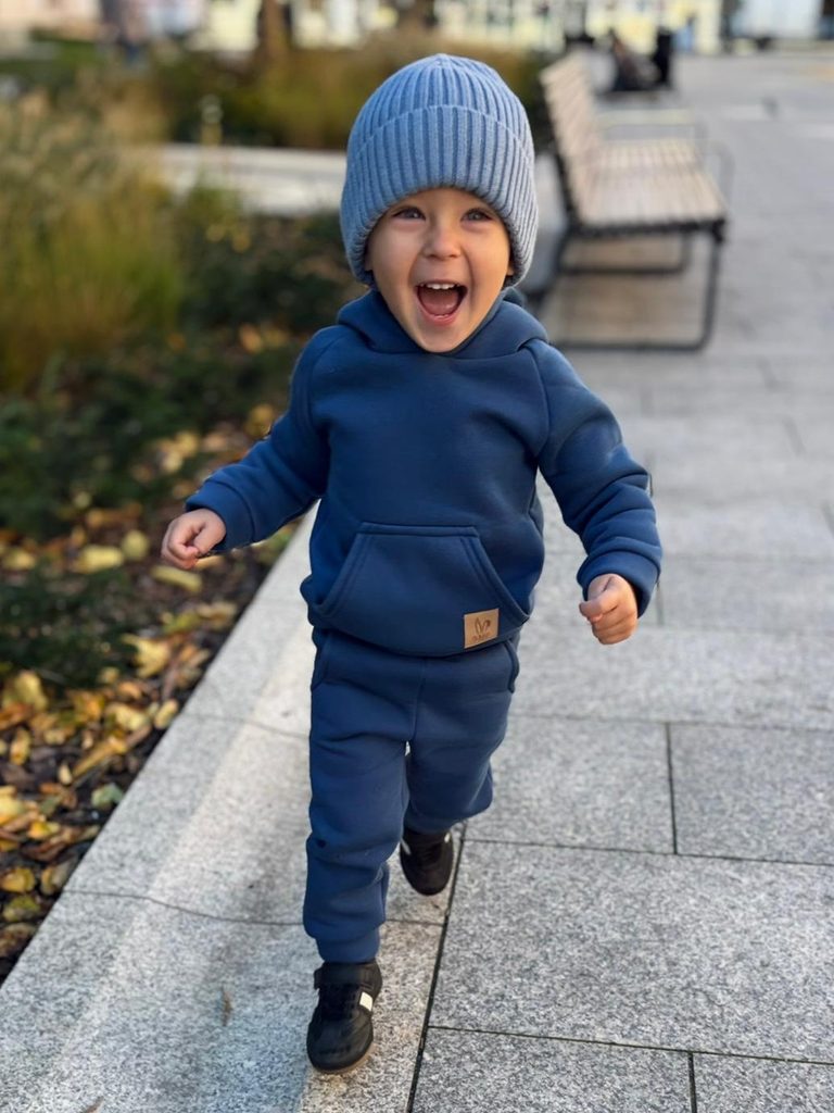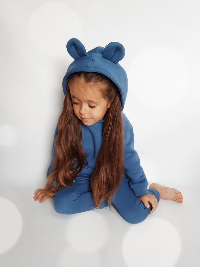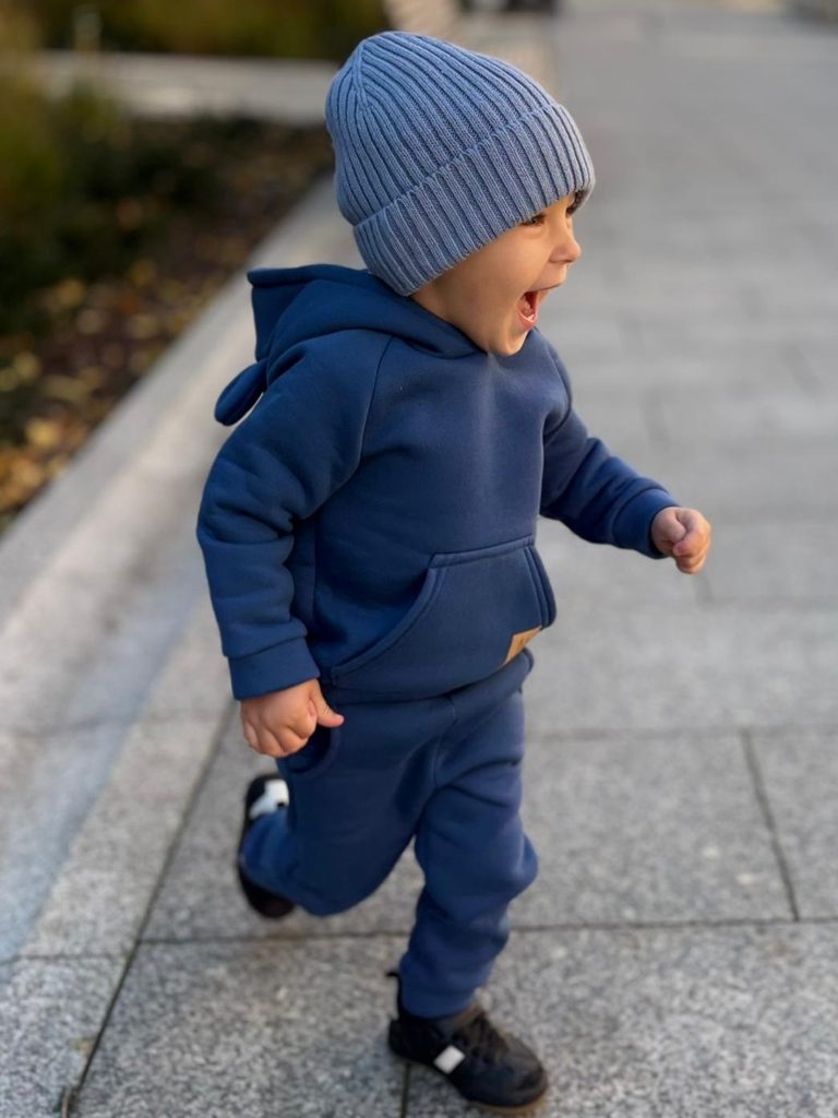 Teplá souprava mikiny "klokanky" a tepláčků Medvídek od Bunnykids - barva TMAVĚ MODRÁ: