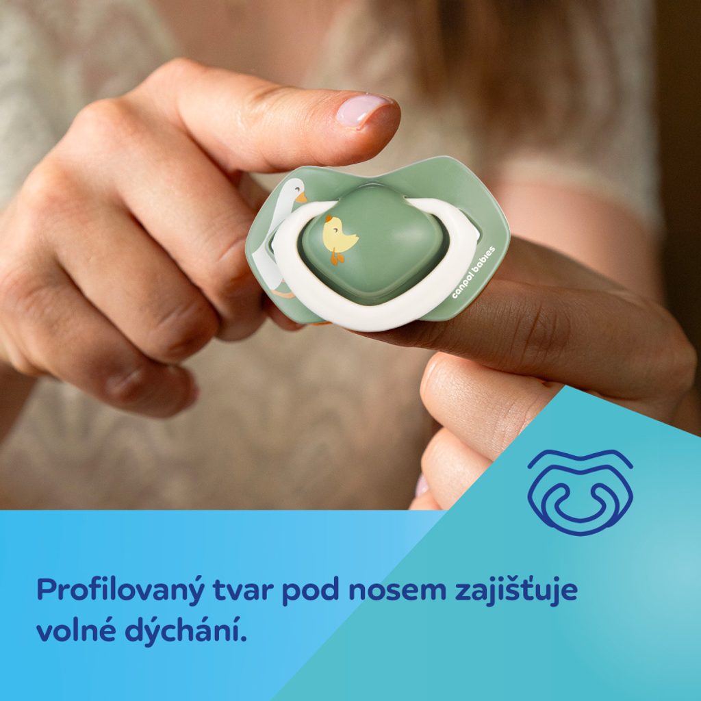Sada 2ks dudlíků se silikonovým "cumlíkem" symetrického tvaru z inovativní řady Light Touch. Určené dětem 18 měsíců+. Značka: Canpol babies. Kolekce GOOSE. extra lehké a malé dudlíky pro maximální pohodlí, výjimečně měkká savička - při sání vyžaduje menší úsilí, což dítě rychleji uklidní, savička…