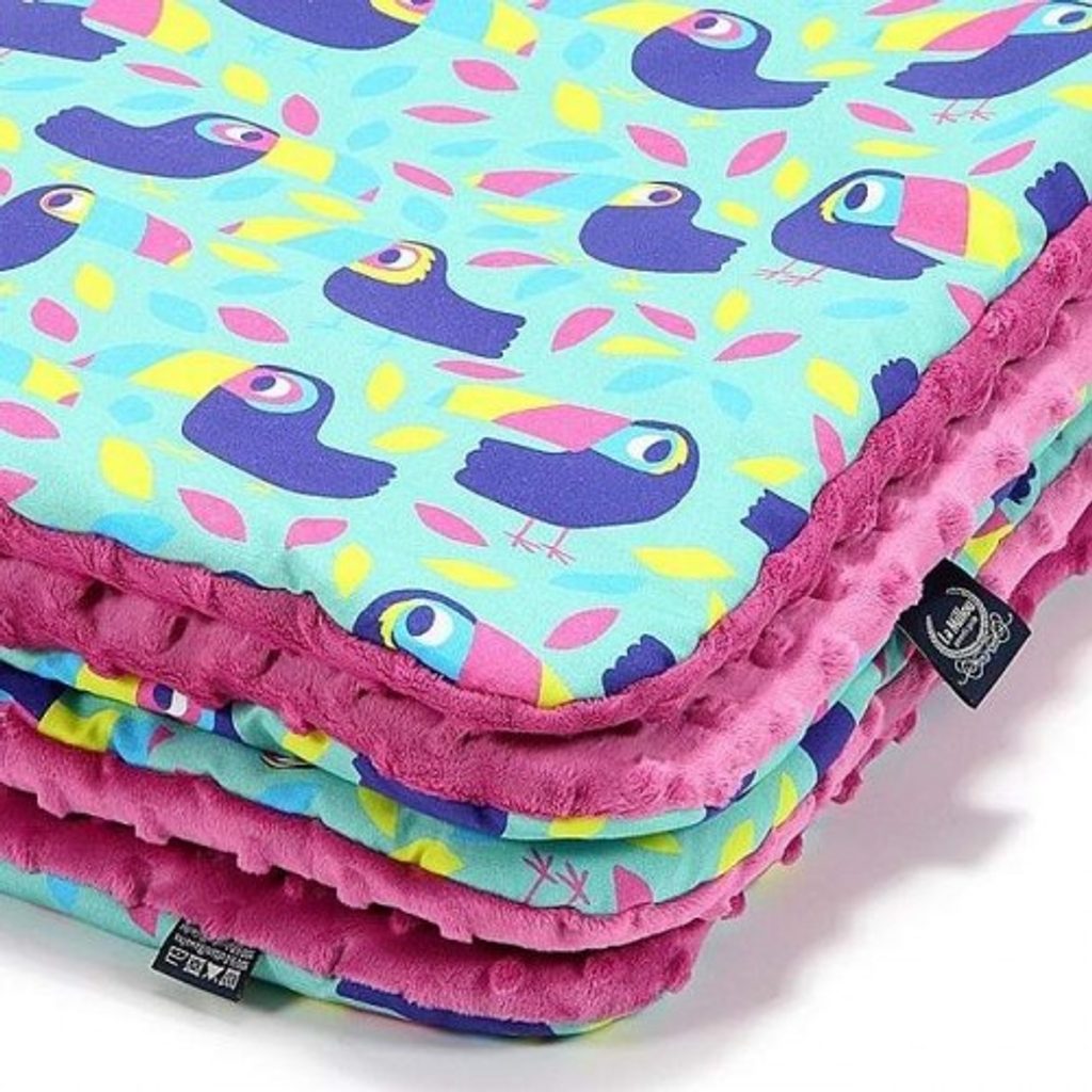 Luxusní oboustranná dětská deka s výplní v designové kombinaci TUCANS - RASPBERRY, Vás zavede do neuvěřitelného, báječného a pestrého světa La Millou, který si jednoznačně zamilujete!! Nejvyšší kvalita použitých materiálů i provedení, originální vzory výrobků La Millou, splní požadavky těch nejnáročnějších zákazníků.