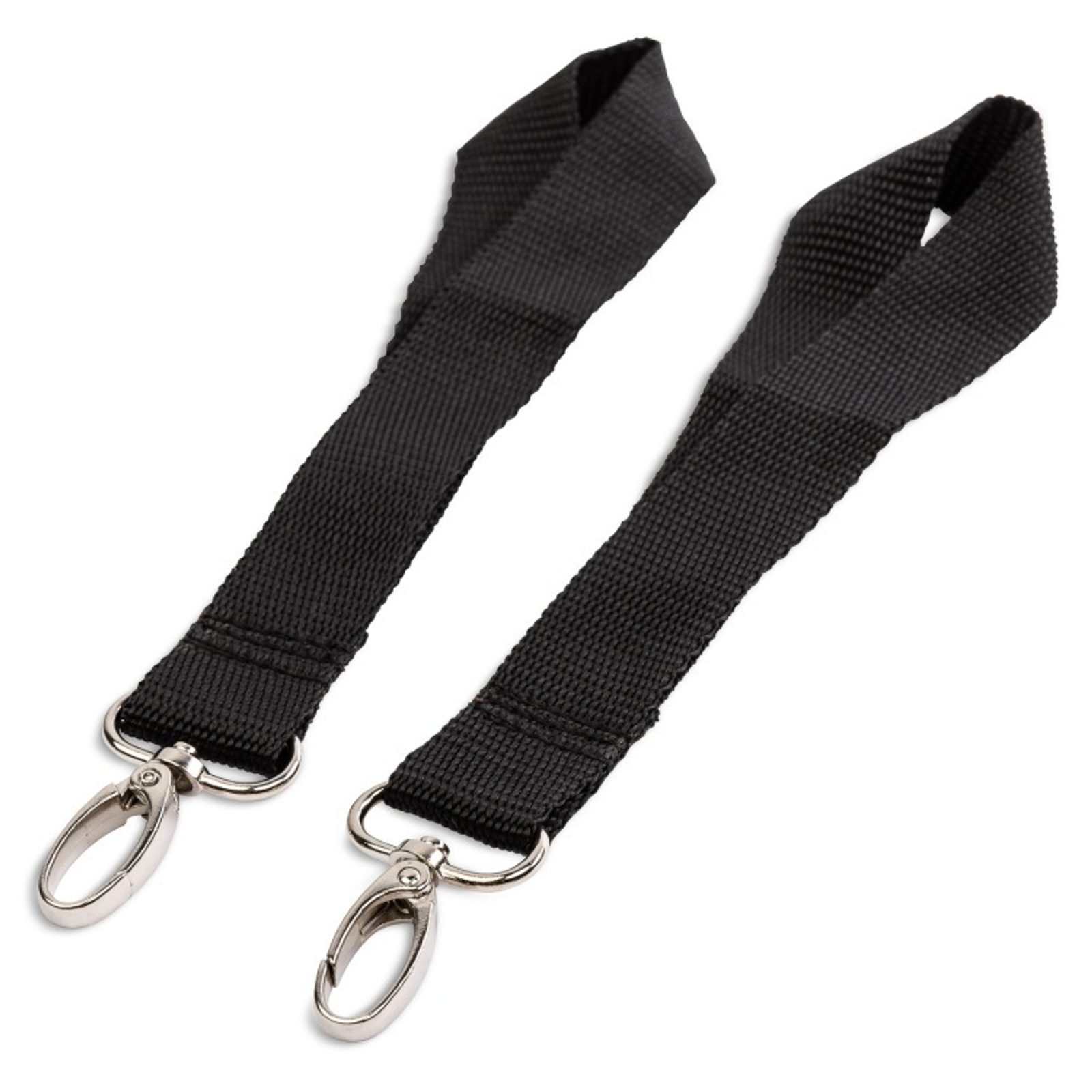 Univerzální úchyty na kočárek značky Caretero pro připevnění tašky, organizéru nebo batohu na kočárek. Popruh je textilní (popruhovina), karabiny kovové. Rozměry: šířka popruhu je 2,5cm, délka i s karabinou 22,5cm.