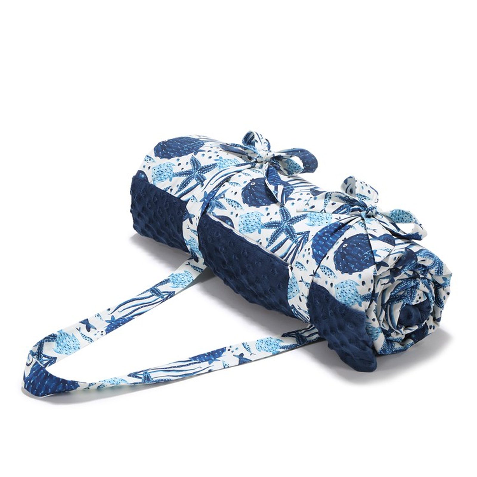Pikniková deka "XL" (145x170cm) od La Millou z kolekce Santorini & Navy: ideální deka na výlety, zábavu na zahradě či piknik v parku, nepromokavá podšívka z ortalionu - nepropustí vlhkost, "skrytá" kapsička na zip pro uschování drobností, skladná a lehká - s praktickými…