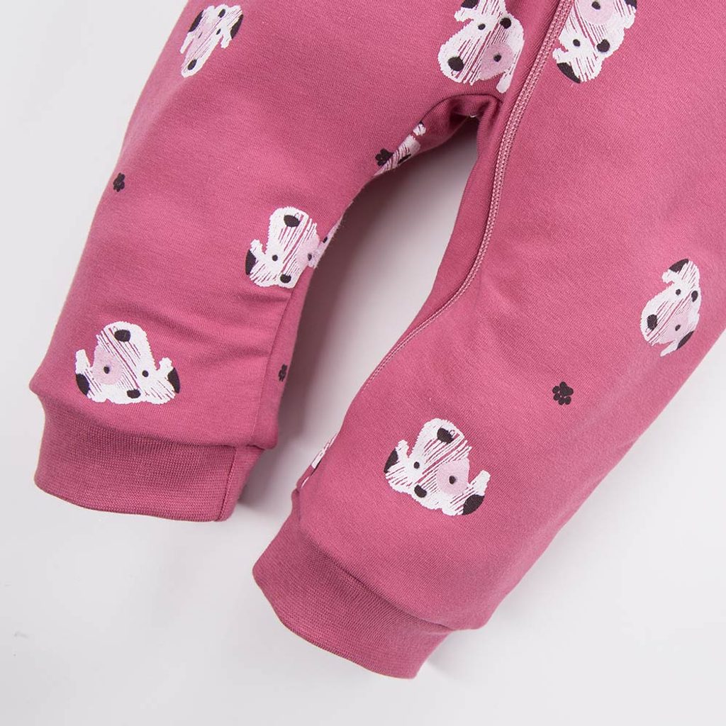 Dětská kombinéza/overal z teplákoviny značky Eevi z kolekce Dogs & Spots - TMAVĚ RŮŽOVÁ: