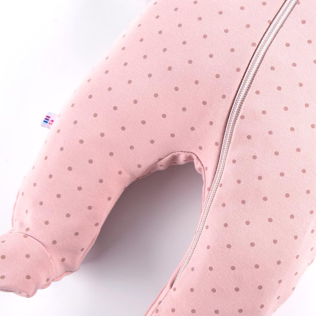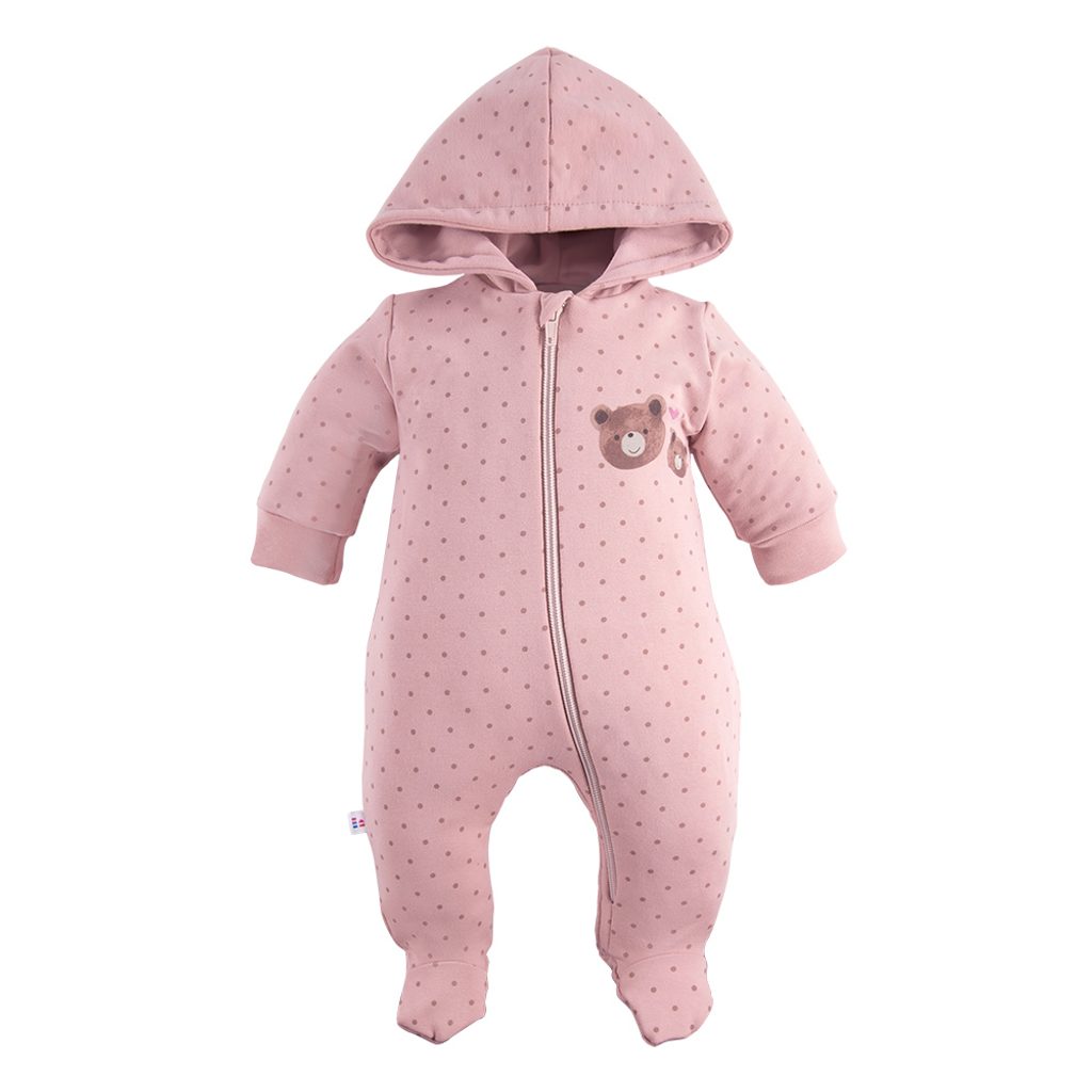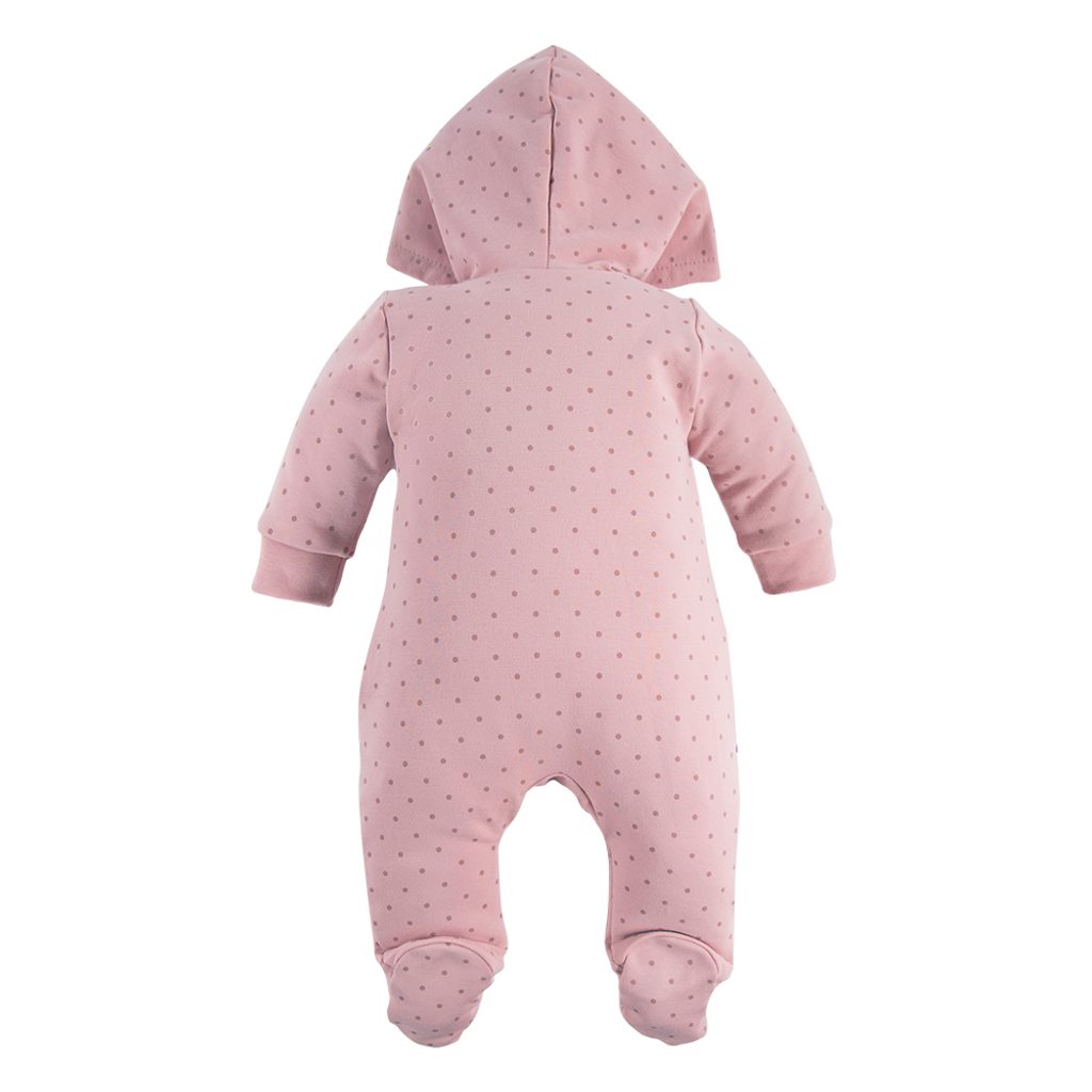 Kojenecká kombinézka s kapucí značky Eevi z kolekce Hearts&Bears - pudrově růžová s puntíky: