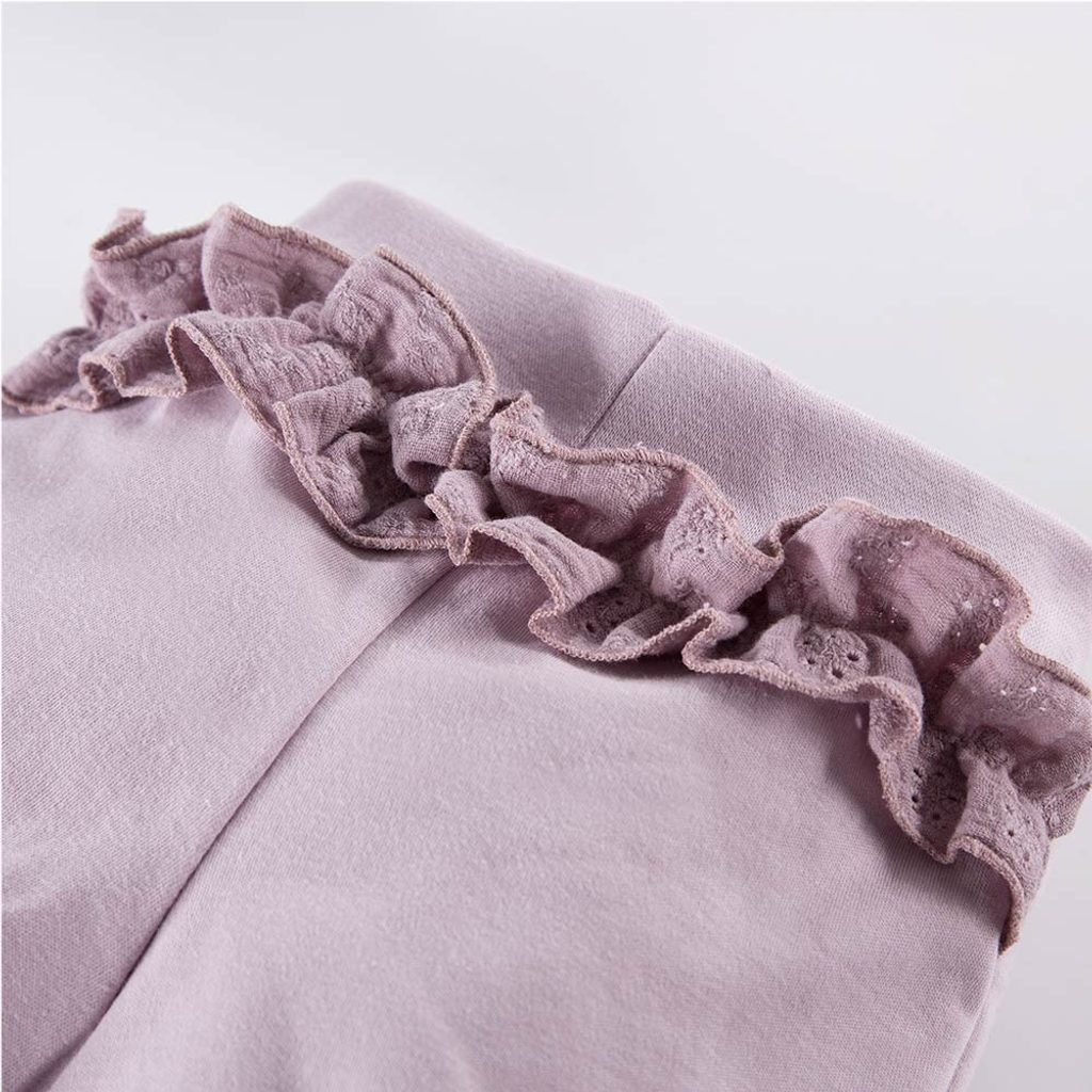 Kraťásky s ozdobným volánkem na zadečku značky Eevi z kolekce Botanic - ve vřesové barvě: ozdobný volánek z vyšívaného mušelínu (madeiry), volnější "balónový" střih nohaviček, materiál: 100% bavlna (jersey úplet/mušelín) evropský výrobce s více než 20-letou historií. Slaďte s dalšími kousky…