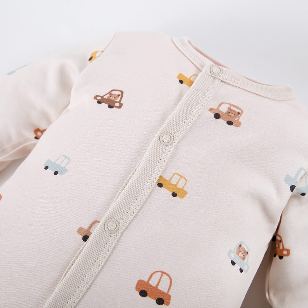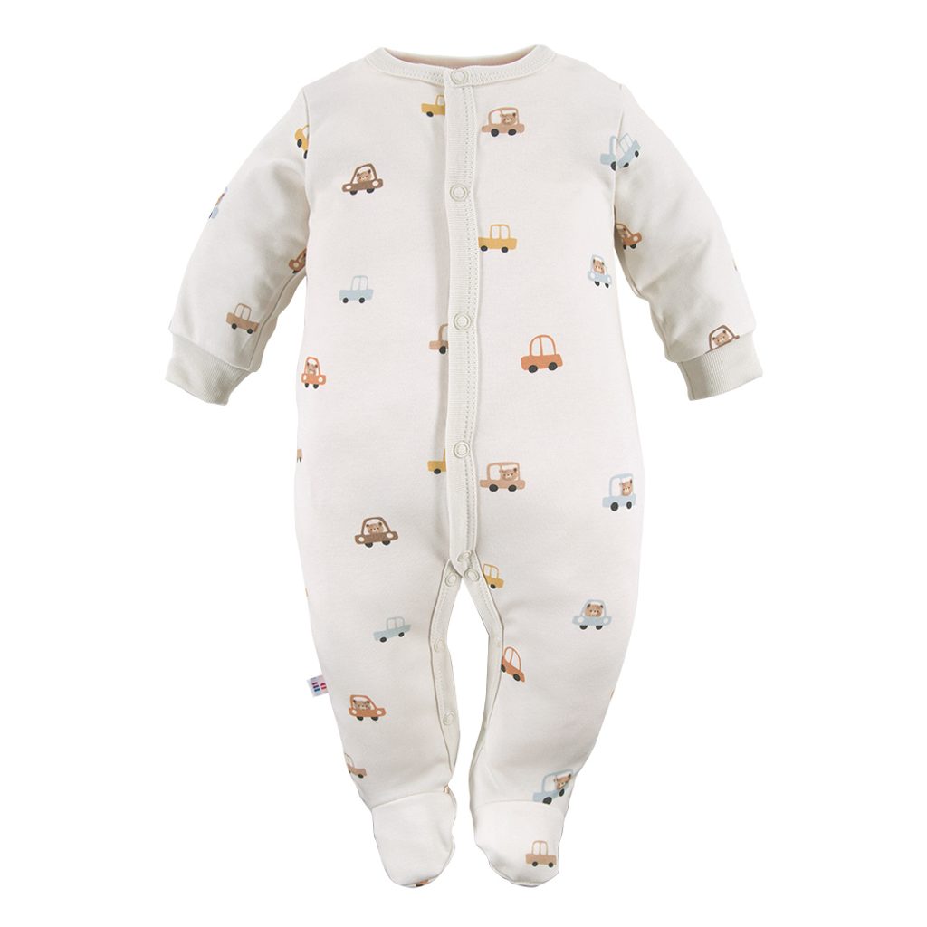 Kojenecký overal značky Eevi z kolekce Cars&Bears - design AUTÍČKA. Barva : BÉŽOVÁ.