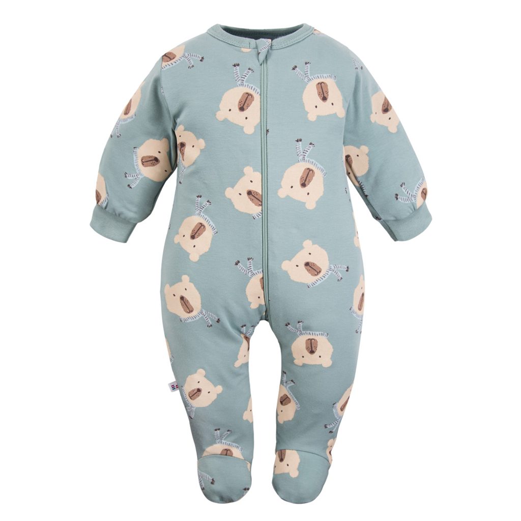 Overal pro miminko na zip značky Eevi z kolekce Beary Cool - celovzorovaný ŠALVĚJOVÝ, s potiskem medvídků: zapínání na zip, materiál: 95% bavlna/5% elastan (jersey úplet), evropský výrobce s více než 20-letou historií, vyrobeno v EU. Slaďte s dalšími kousky oblečení ze stejné kolekce!