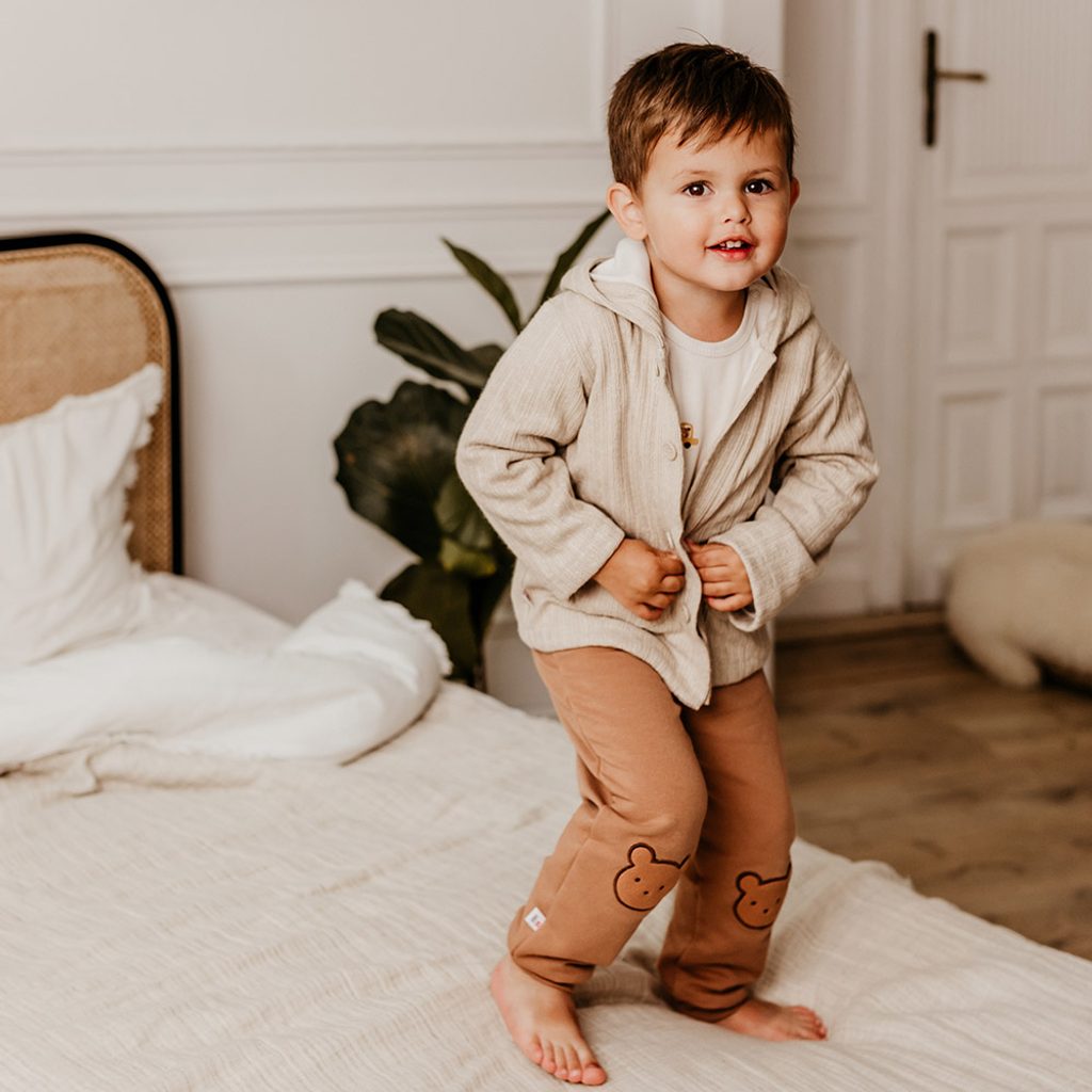 Tepláčky značky Eevi z kolekce Cars&Bears - barva HNĚDÁ: roztomilé nášivky medvídků vpředu, materiál: 100% bavlna (počesaná teplákovina), evropský výrobce s více než 20-letou historií. Slaďte s dalšími kousky oblečení značky Eevi! Orientační velikostní tabulka*: 62 - celková délka 34cm/ šíře…