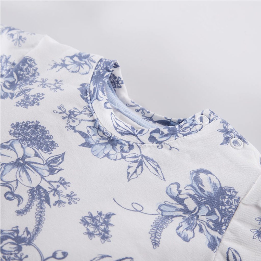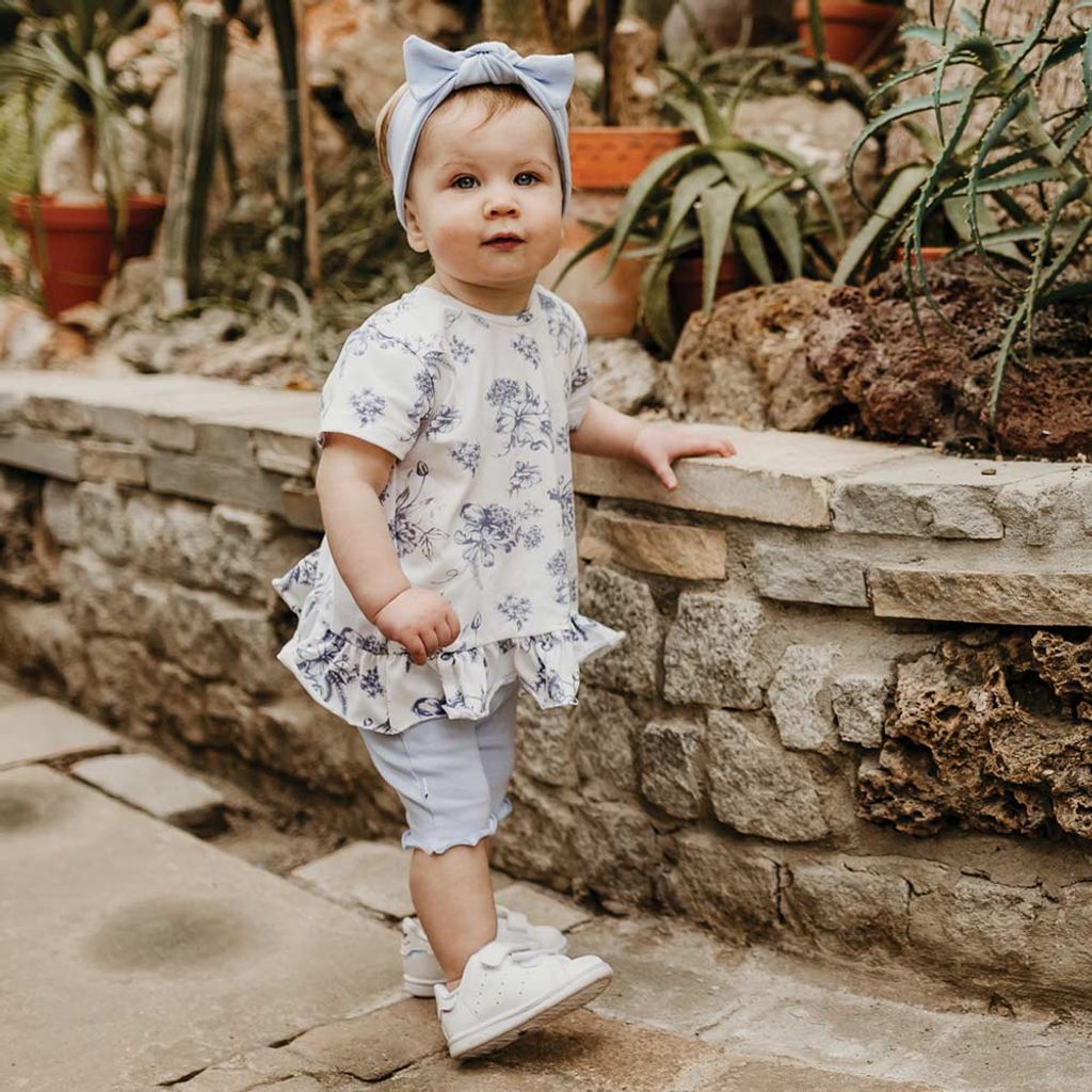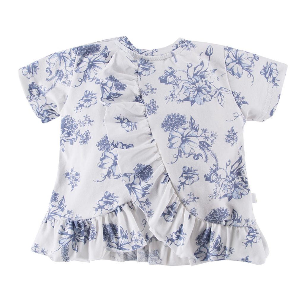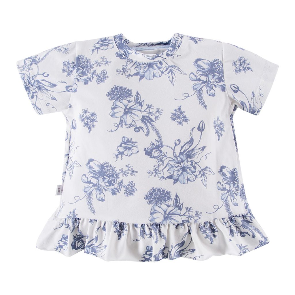 Tunika s krátkým rukávem značky Eevi z kolekce Botanic - bílá s motivem modrých květin. s ozdobným volánkem, jedinečné řešení zadní části zajišťuje, že záda v parnu větrají, zapínání na rameni na patentky, materiál: 100% bavlna (jersey úplet), evropský výrobce s více než 20-letou historií. Slaďte…