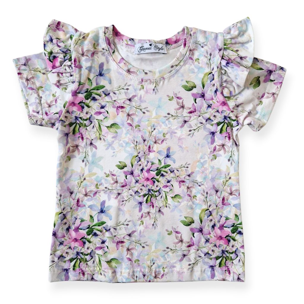 Blůzka s krátkým rukávem značky Gamex vzor FIALOVÉ KVĚTY: