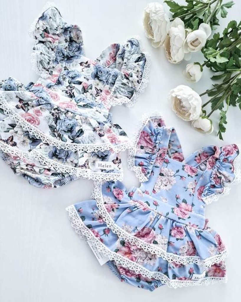 Rampers Blue Flowers - jedinečný, stylový kousek do šatníku malých slečen od značky Helen:
