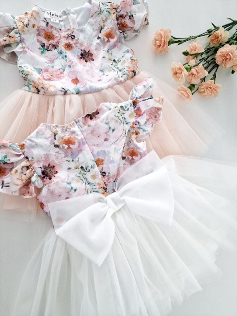 Tylové šatičky značky Helen - design Creamy Flowers s bílou tylovou sukýnkou: