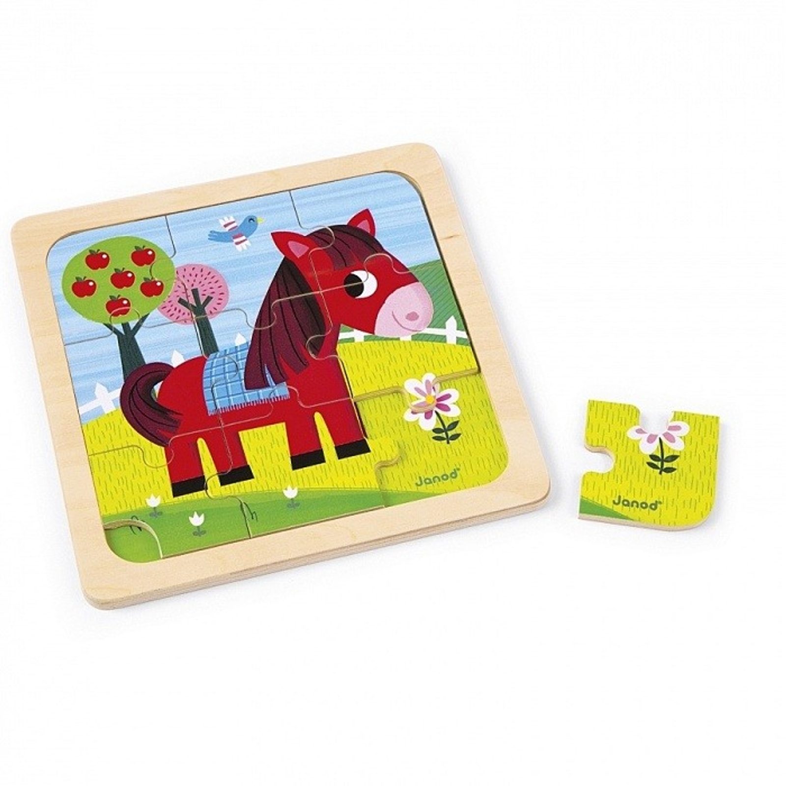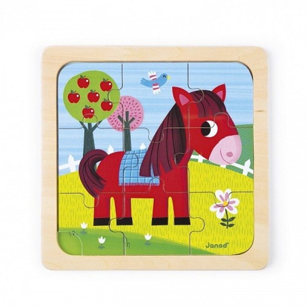 Dřevěné puzzle s předlohou KONÍK TORNÁDO tradiční francouzské značky Janod.