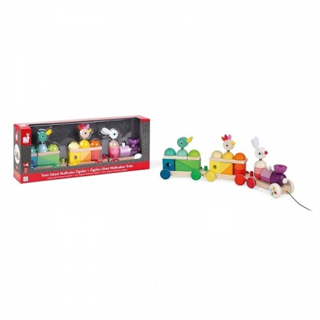Velký dřevěný edukační tahací vlak/stavebnice 2v1 GIGANT z kolekce ZIGOLOS - tradiční francouzské značky Janod.