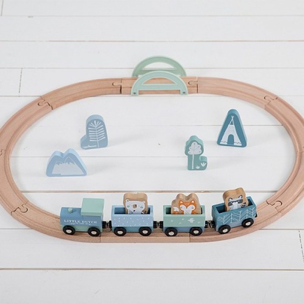 Dřevěný vláček s dráhou - v modré (blue) barevné kombinaci z kolekce Adventure, holandské značky Little Dutch. To je kvalitní, navíc vkusná a stylová hračka se kterou si Váš mrňousek užije spoustu zábavy!