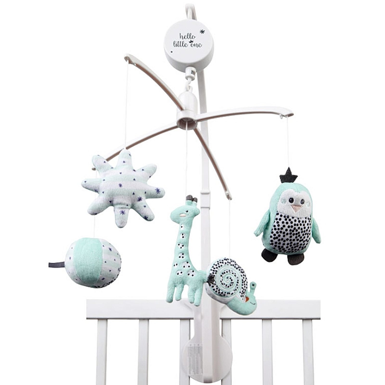 Hudební kolotoč na postýlku s plyšovými závěsnými hračkami z kolekce HELLO LITTLE ONE - holandské značky Tiamo. Hudební kolotoč je hračkou určenou nejmenším miminkům - a to k umístění na jejich dětskou postýlku. Po natažení hudebního strojku hraje melodii, která dítě uklidňuje a pomáhá mu usínat.