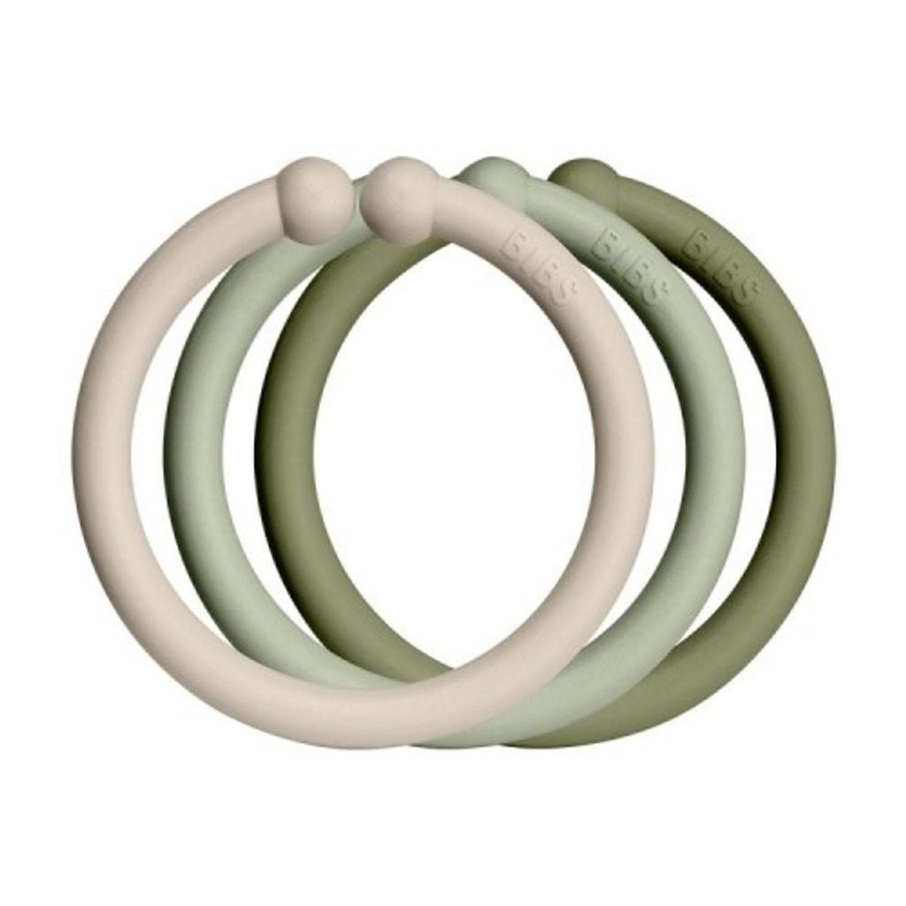 Loops Kroužky 12ks dánské značky BIBS v barevném provedení: Vanilla/Sage/Olive.