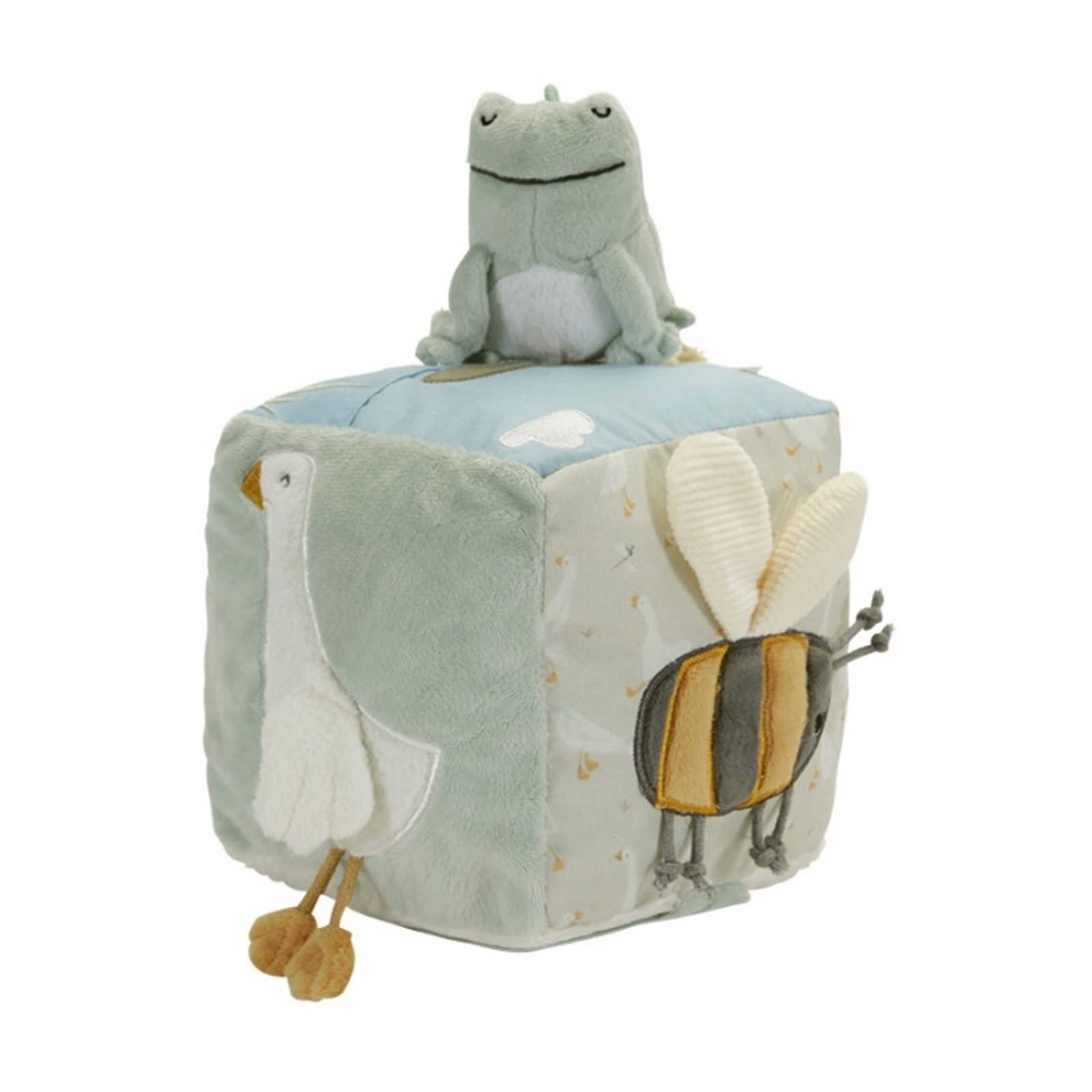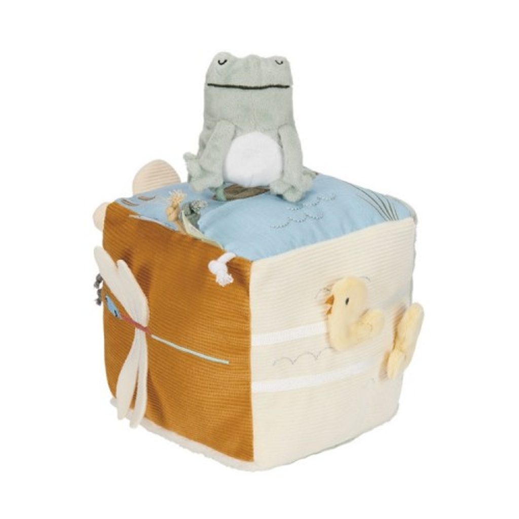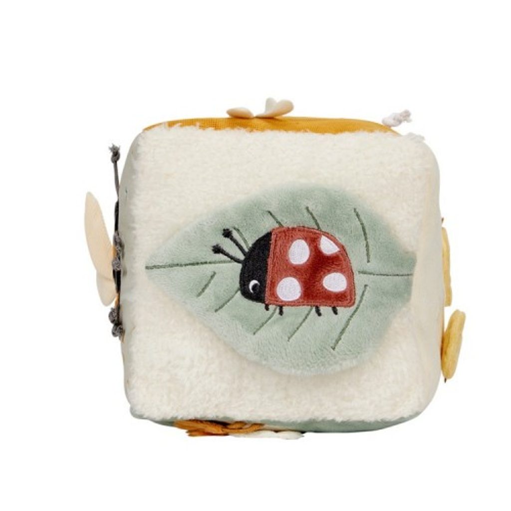 Plyšová edukační kostka HUSA holandské značky Little Dutch, je určena již nejmenším dětem. Hračka obsahuje různé interaktivní prvky, které přitahují pozornost dítěte, podněcují jej ke zkoumání a stimulují rozvoj jeho smyslů (zraku, sluchu, hmatu) a motoriky. Je vyrobena z kvalitních materiálů - kombinace plyše, hladké tkaniny, manžestru a bezpečného zrcátka. Velkou výhodou je, že hračku lze vyprat v ruce, čímž ji udržíte v čistotě.