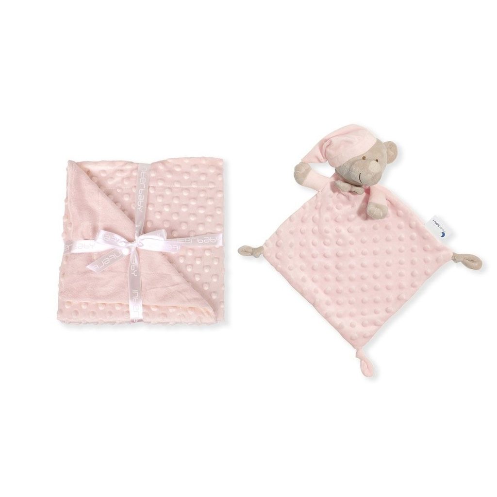 Heboučká dětská deka značky Interbaby z kolekce Kuličky + přítulka MEDVÍDEK barva: RŮŽOVÁ. 2-vrstvá - z jedné strany heboučký plyš minky, z druhé strany klasický jemný plyš, vhodná do kočárku i postýlky, rozměr 80x110cm - pro děti od narození do cca 2 let, tělíčko přítulky/mazlíka tvoří čtvercová…