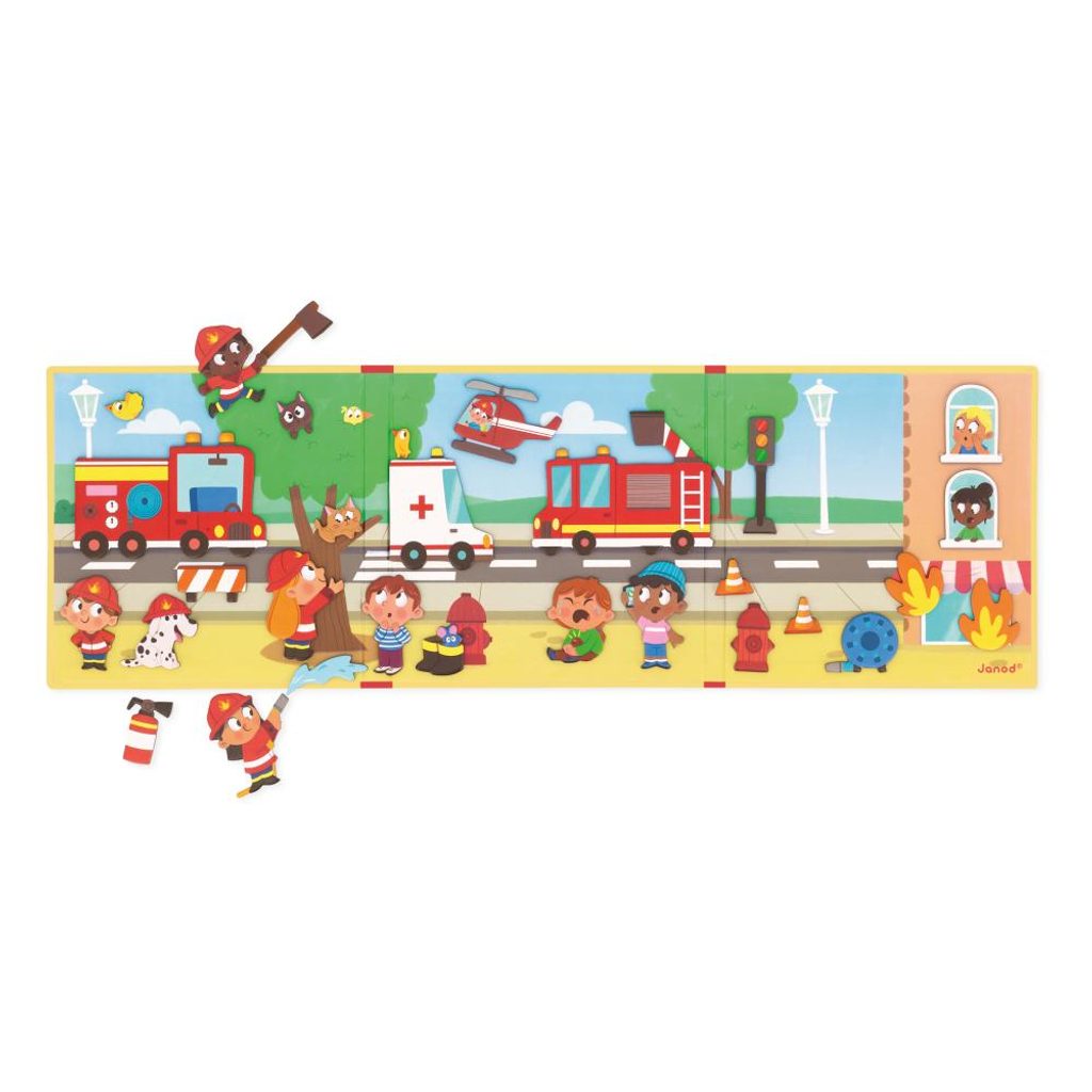 Edukační magnetická kniha "Magnetistories" francouzské značky Janod - téma: HASIČI. Magnetické hry patří mezi TOP produkty značky Janod!