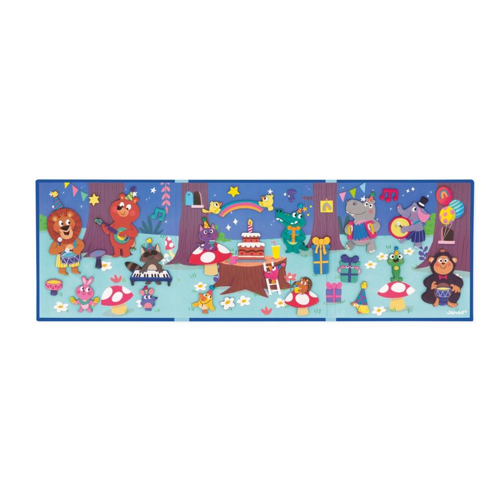 Edukační magnetická kniha "Magnetistories" francouzské značky Janod - téma: NAROZENINOVÁ PÁRTY ZVÍŘÁTKA. Magnetické hry patří mezi TOP produkty značky Janod!