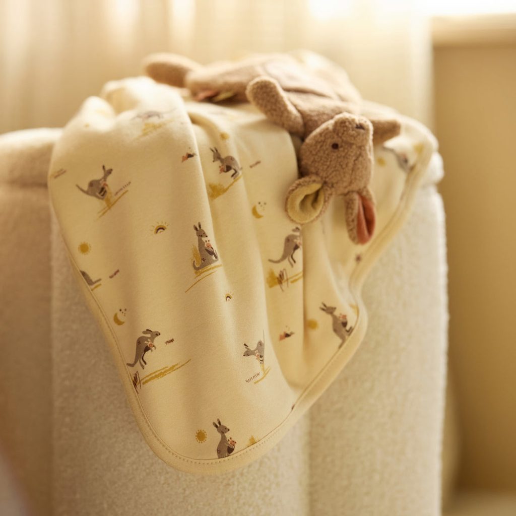 Roztomilý muchláček klokan Kangaroots, značky Jollein. z jemného fleece materiálu láká ke hraní i mazlení před spaním v postýlce či v kočárku, poutko umožňuje připevnit k muchláčkovi šidítko, které tak v postýlce vždy snadno najdete. Rozměry: 26 x 26 x 10 cm Složení: 100% polyester, výplň 100%…